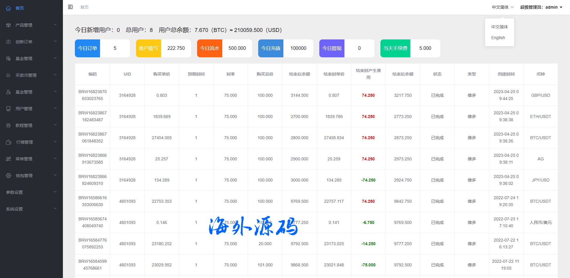 多语言微交易/贵金属外汇虚拟币微盘源码/越南时间盘