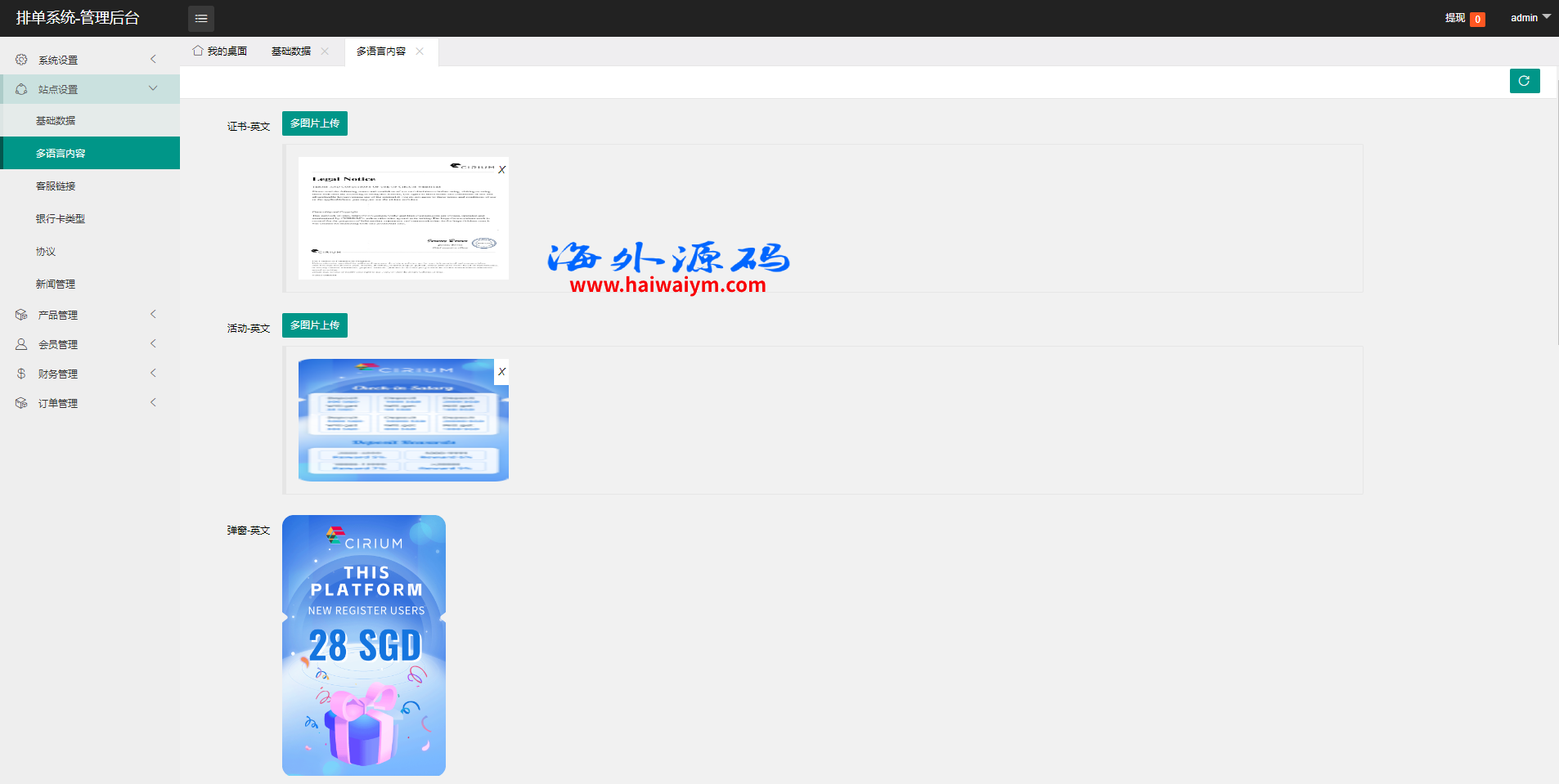 系统默认为英文,有语言包,隐藏了切换语言的页面,可自行修改代码切换中文,越南语言