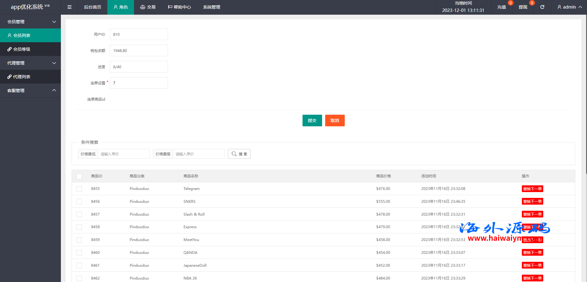 海外商城抢单刷单系统/预设订单/重置订单/签到