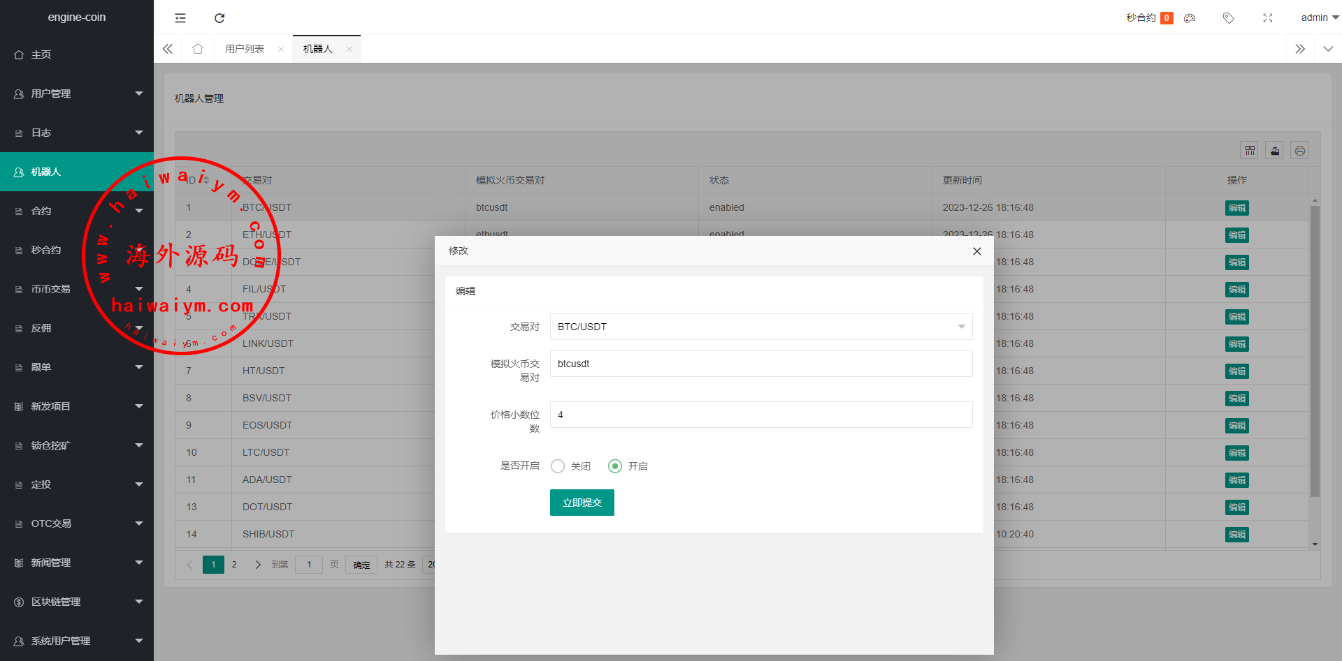 海外多语言交易所/合约/期权/秒合约/插针控制/申购