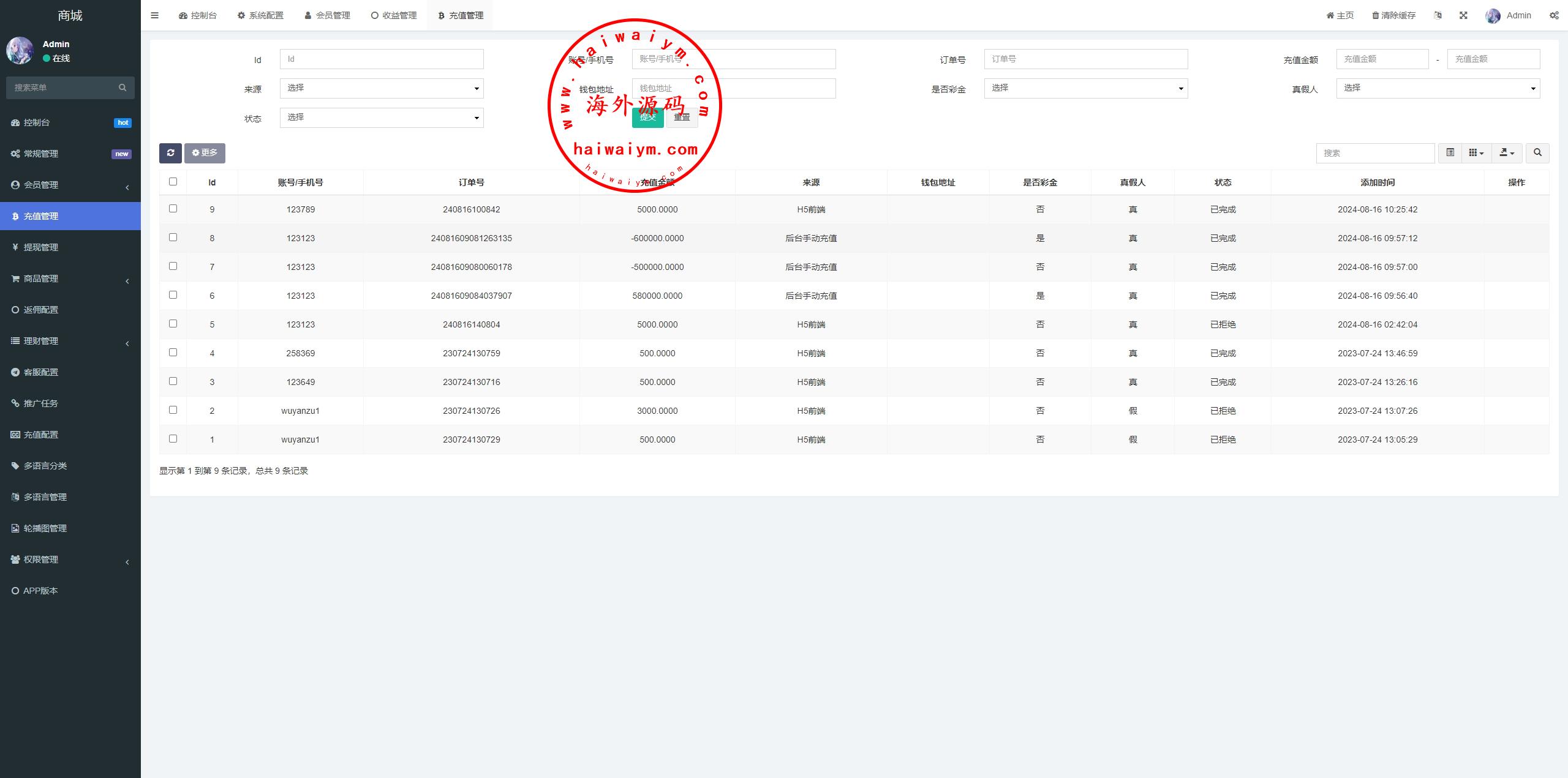 海外商城抢单刷单系统/预设订单/重置订单/签到