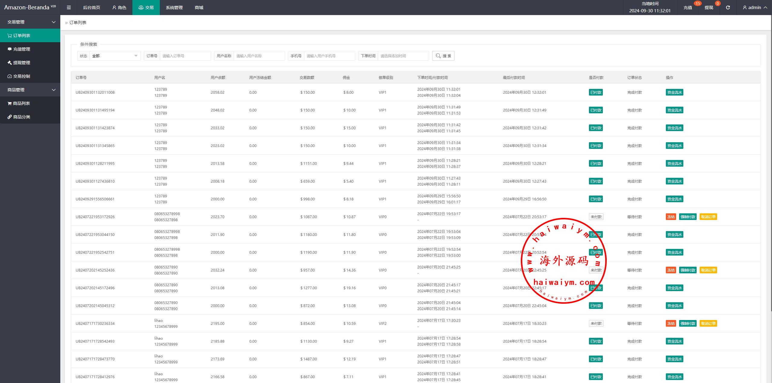 海外商城抢单刷单系统/预设订单/重置订单/签到