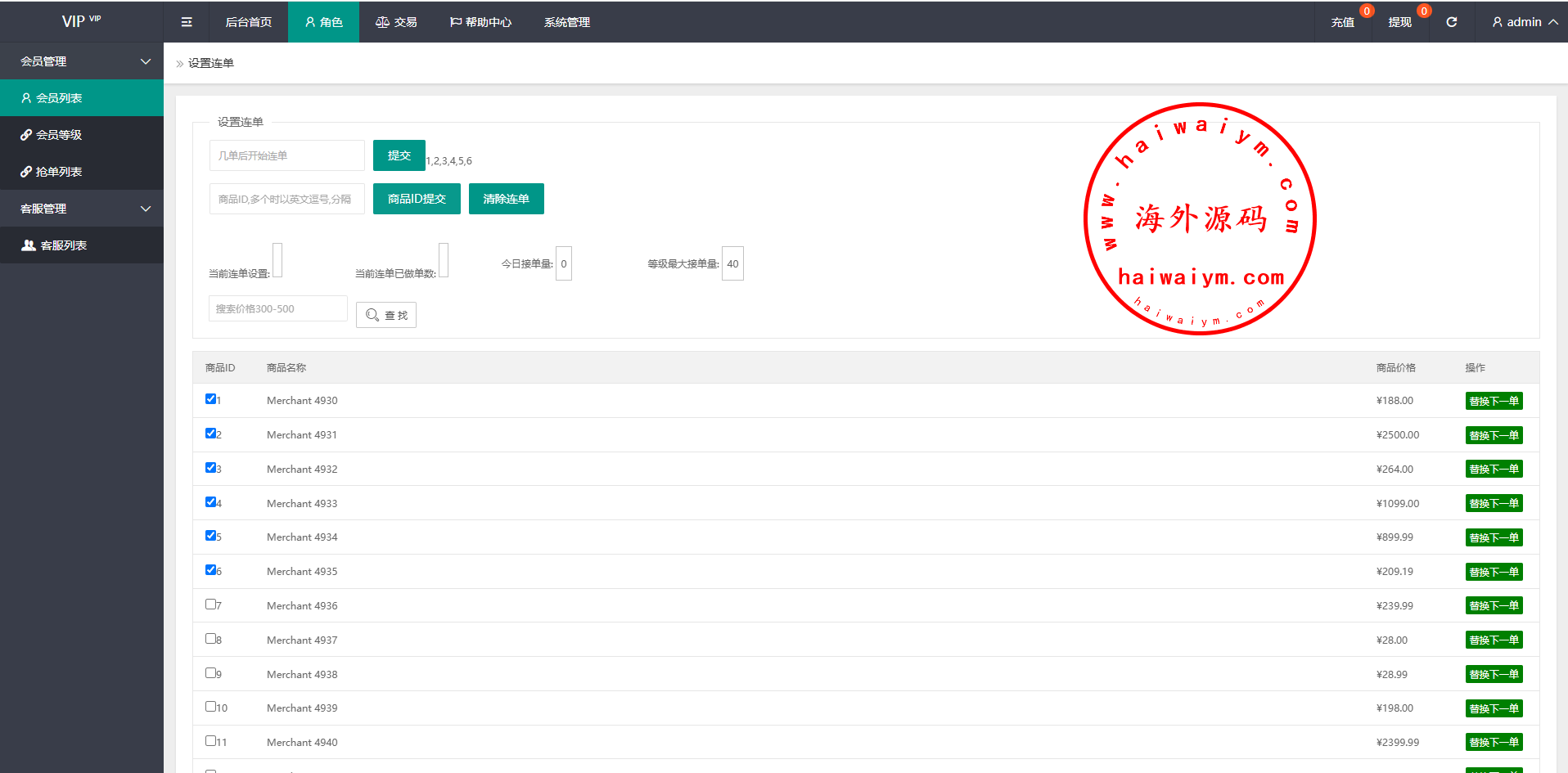 海外商城抢单刷单系统/预设订单/重置订单/签到