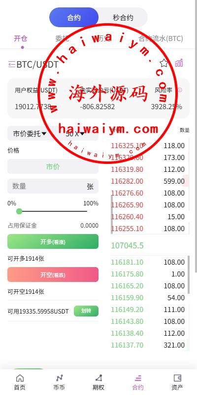 多语言虚拟币交易系统/秒合约交易/伪交易所/时间盘