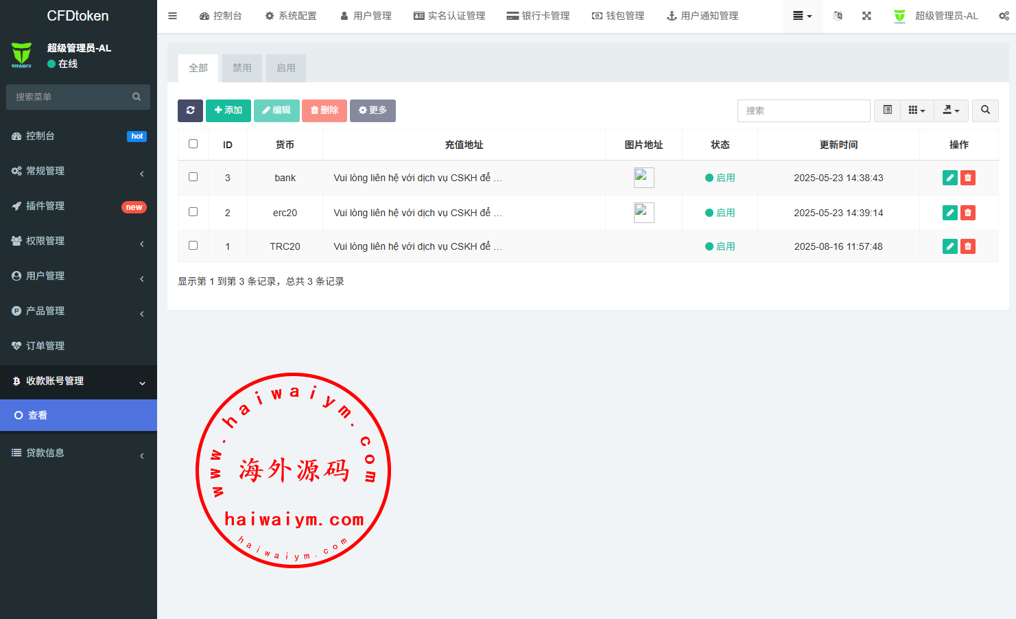 系统功能:信用分,实名认证,银行卡usdt充值提现,用户单控,订单控制等功能