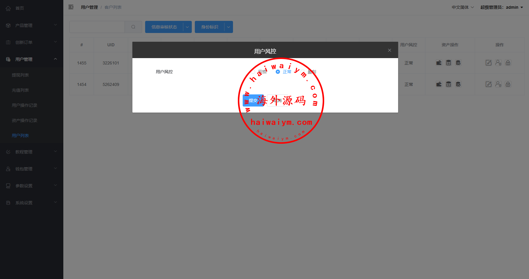 支持用户单控,实名认证,信用分等功能