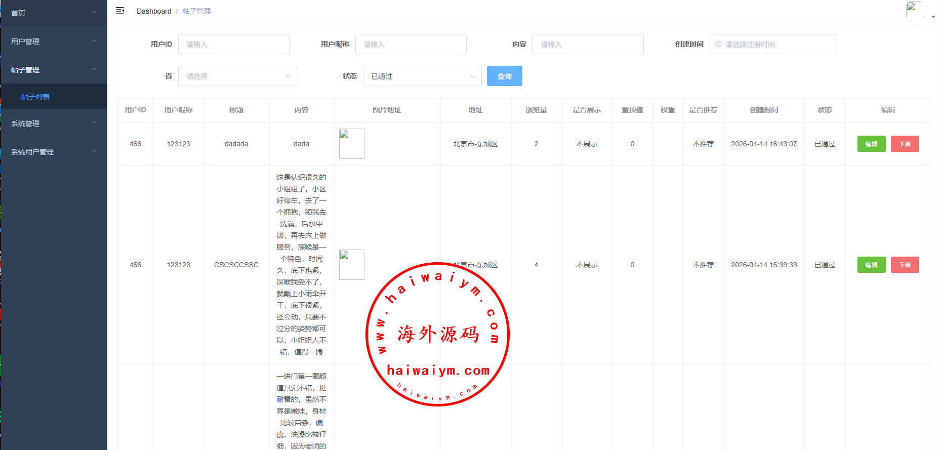 JAVA版同城楼凤系统/楼凤茶馆/信息发布/信息网此套是开源版本,前端uniapp开发电脑手机自适应,后台VUE,服务端JAVA开发全开源
