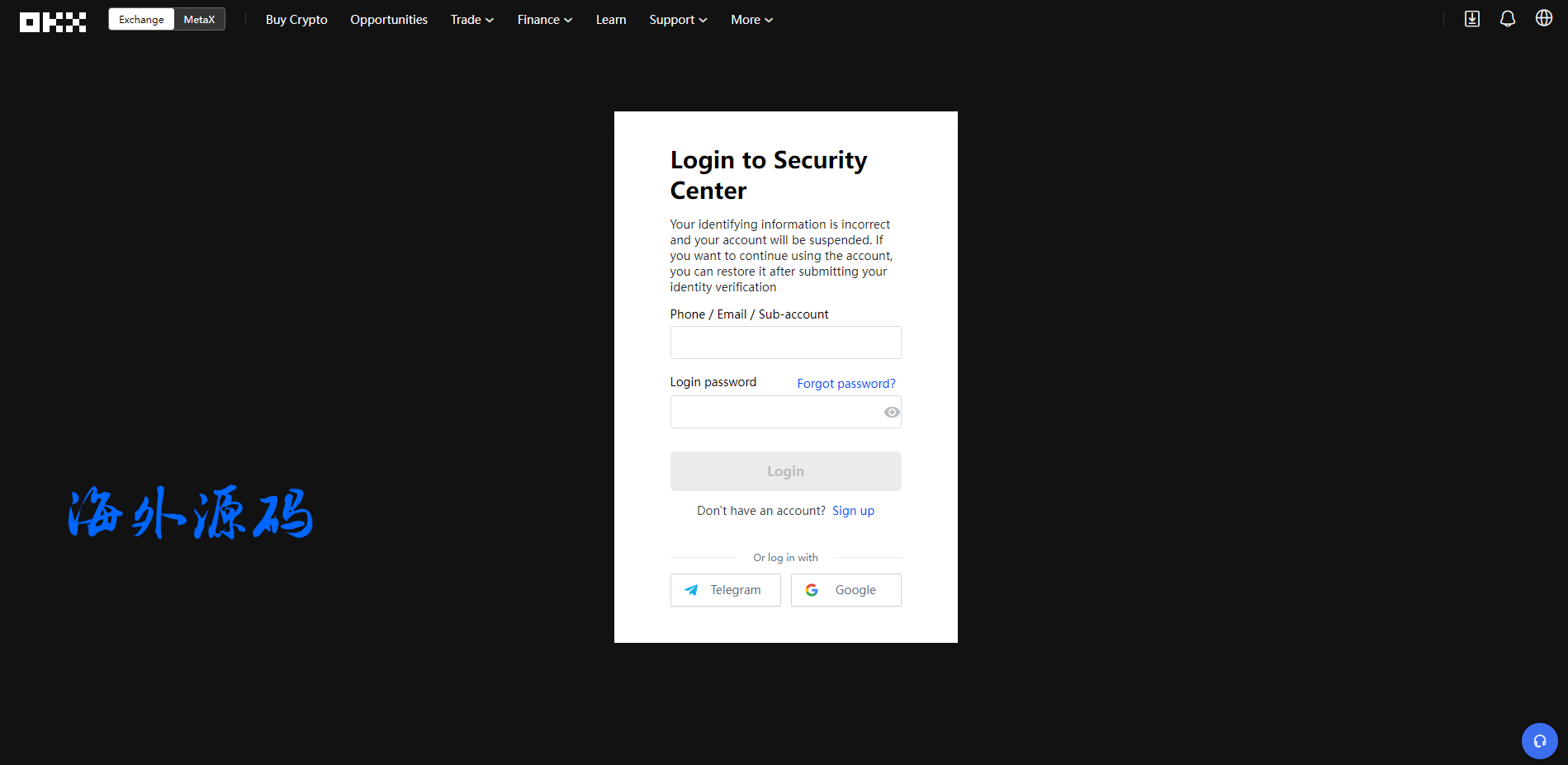 源码时仿的欧意交易所登陆页面,后台可设置登陆返回信息
