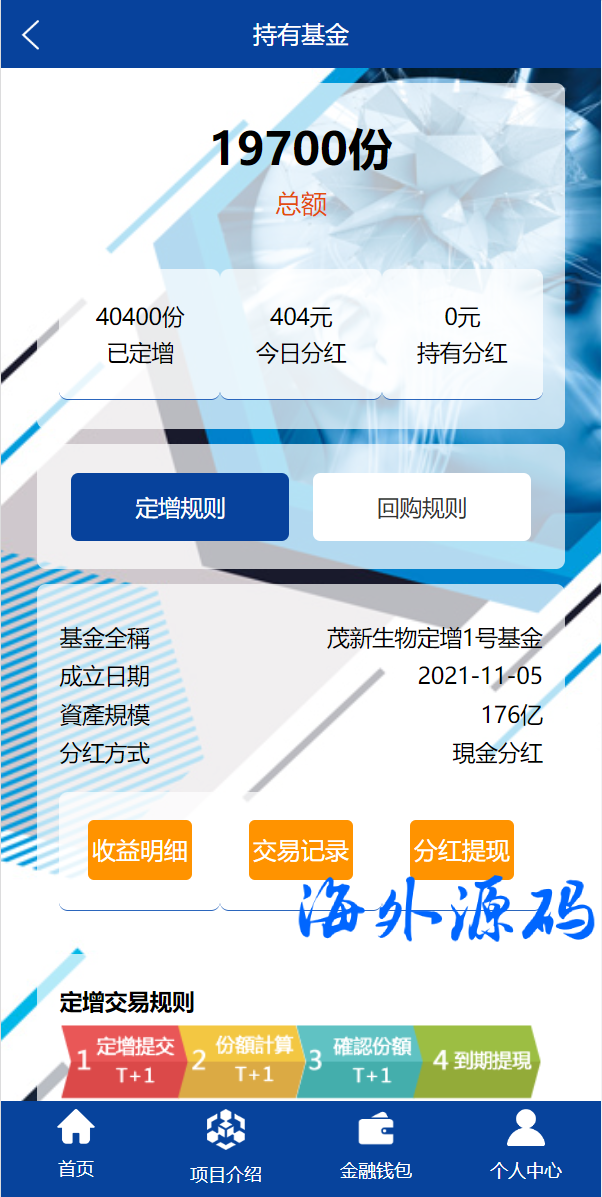 定制版VUE基金投资理财系统/余额宝/签到/积分商城/余额互转