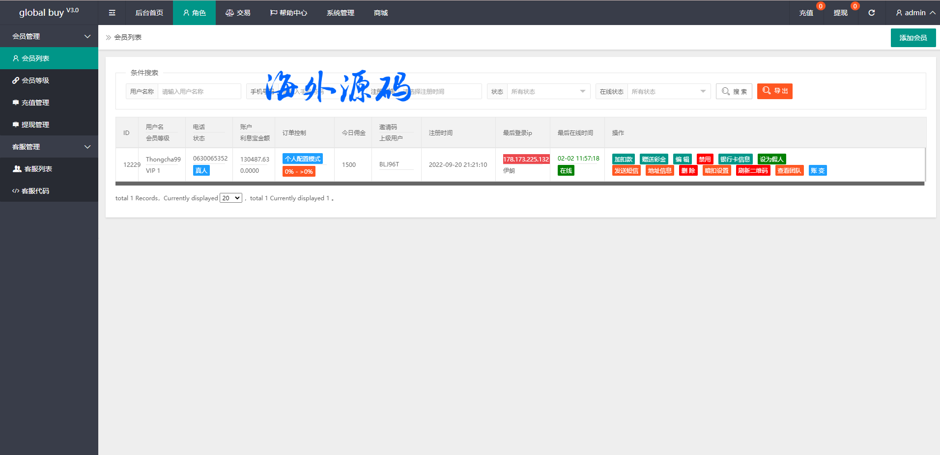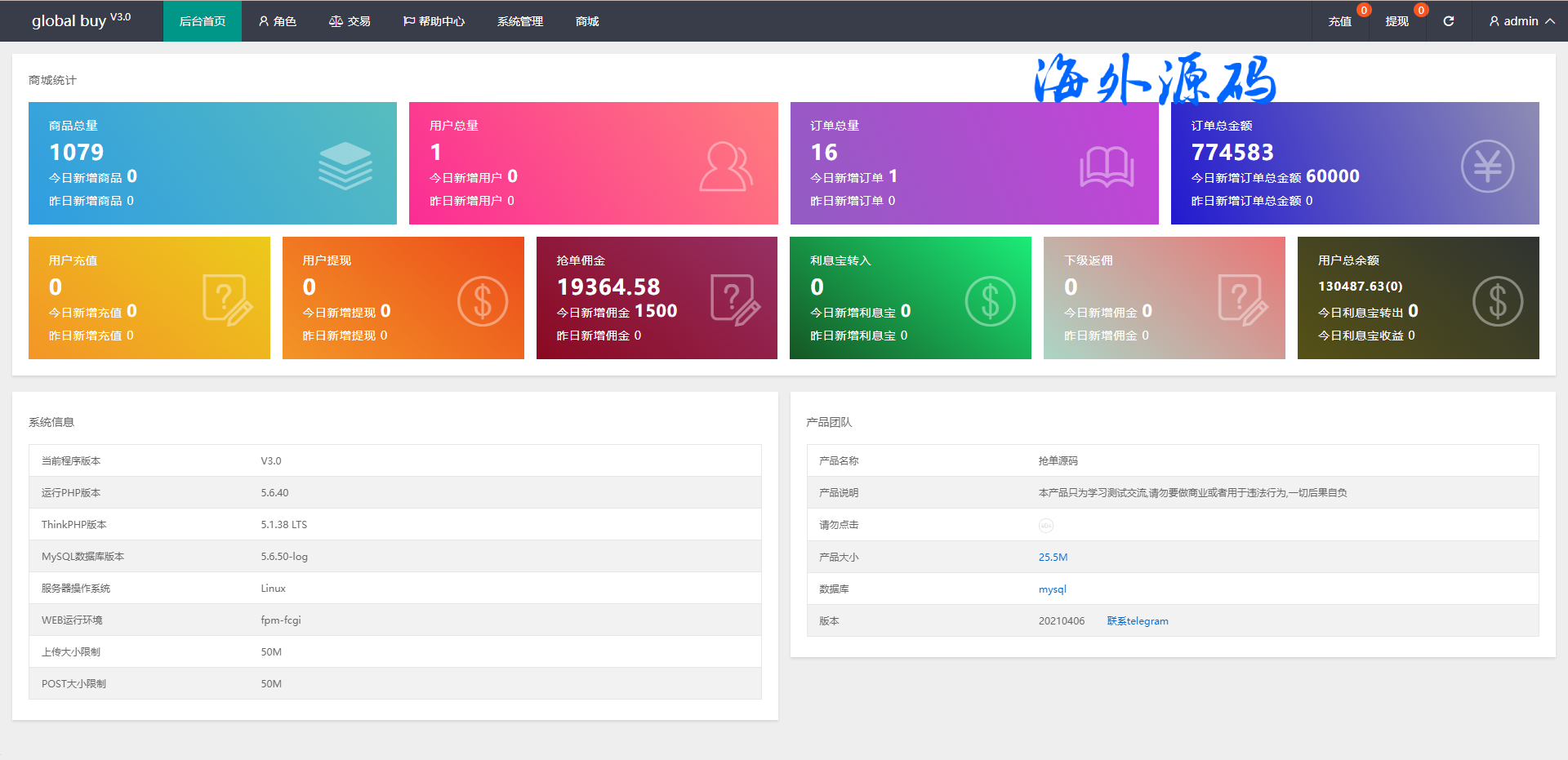 韩国抢单刷单系统/多语言刷单商城/打针/信用分/代理后台
