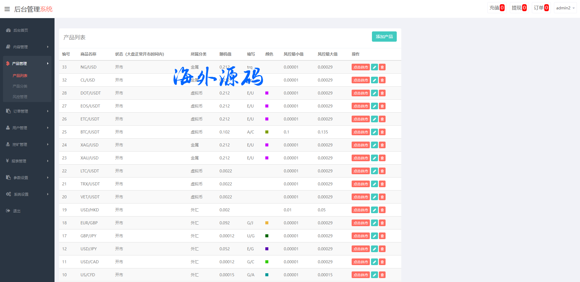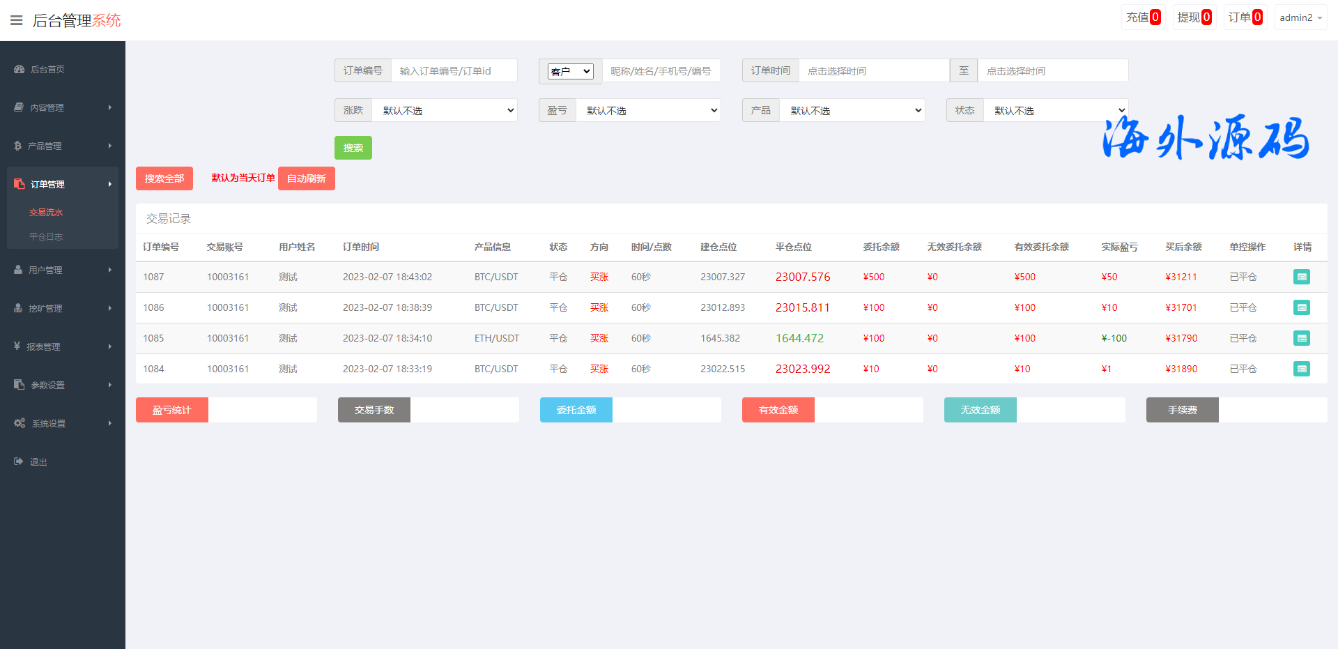 二开版虚拟币微交易系统/伪交易所系统/代理后台/余额宝微盘源码