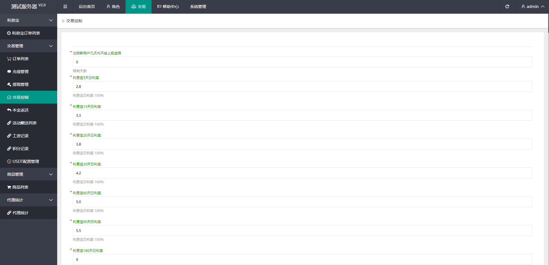 系统支持usdt充值提现,支持余额宝投资项目,后端二开活动奖励、超级登录等一些小功能