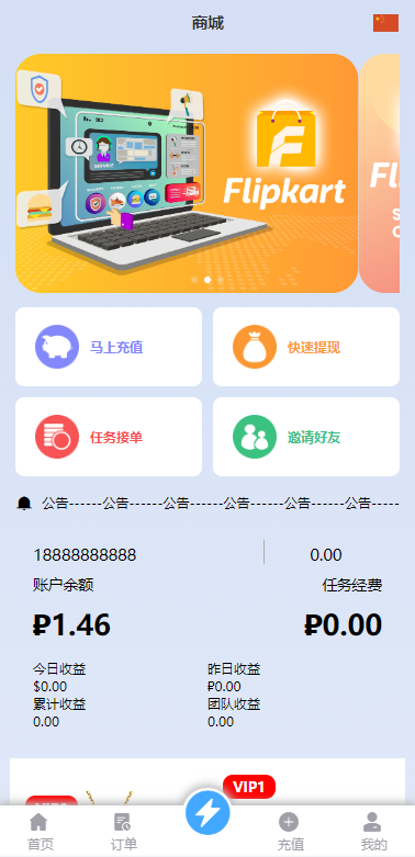 多语言抢单刷单系统/预设订单/重置订单/签到