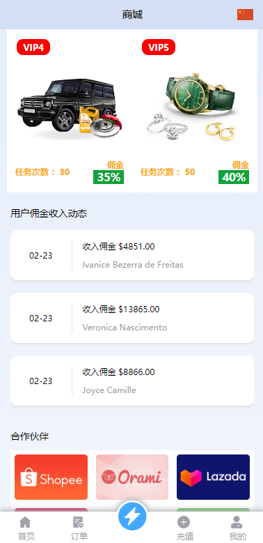 韩国抢单刷单系统/多语言刷单商城/打针/信用分/代理后台
