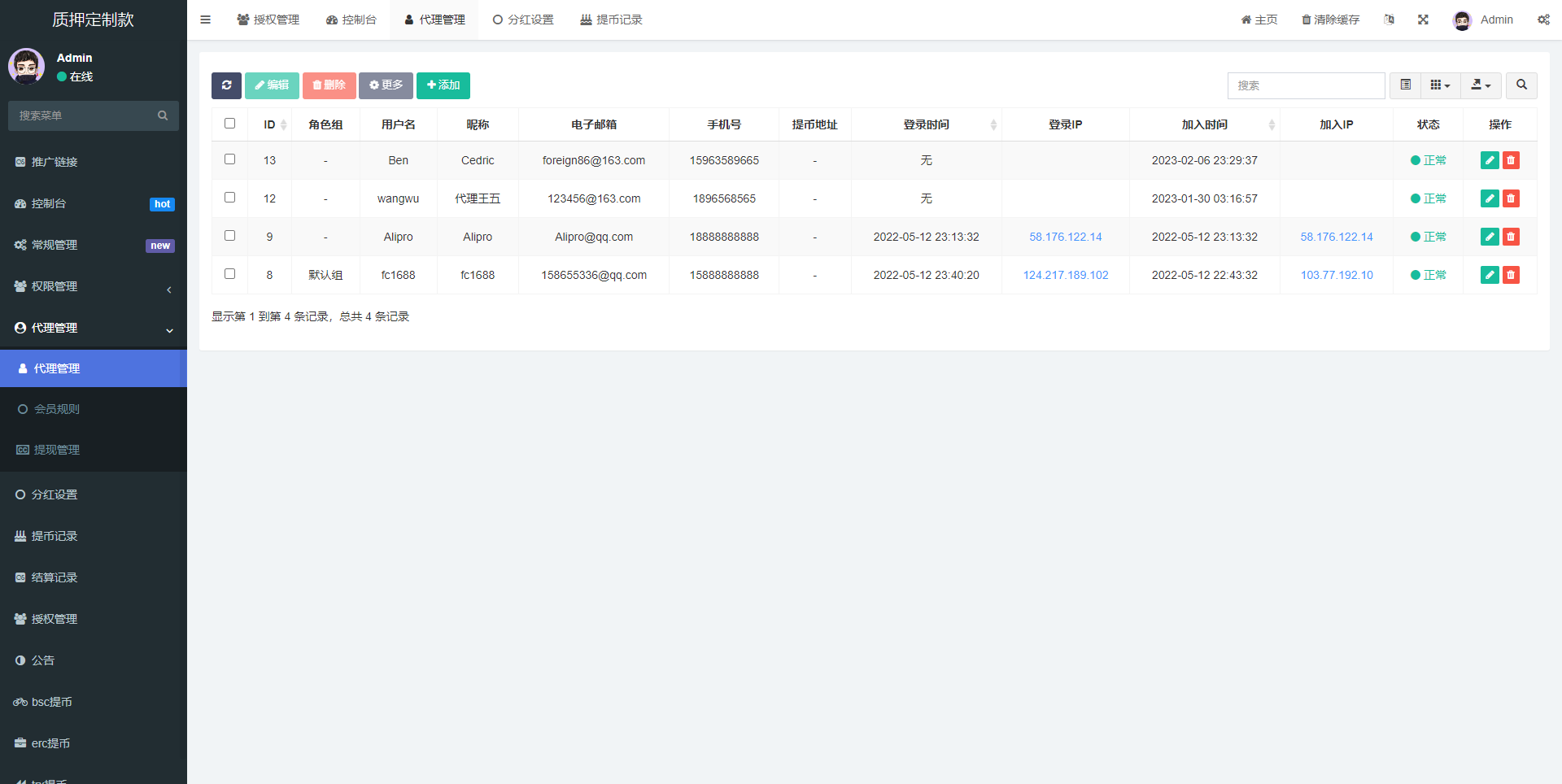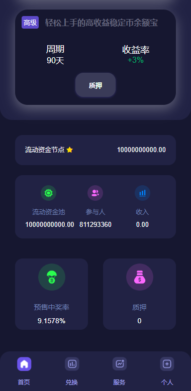 后台功能非常完善 分红模式 每天分红四次 利滚利模式 根据质押的周期的利率决定