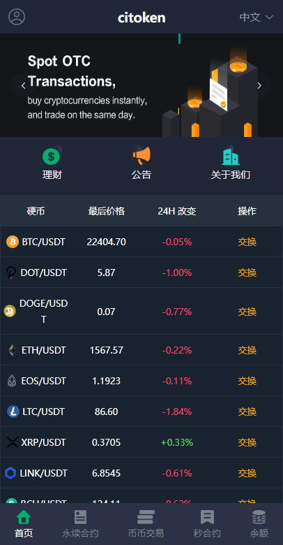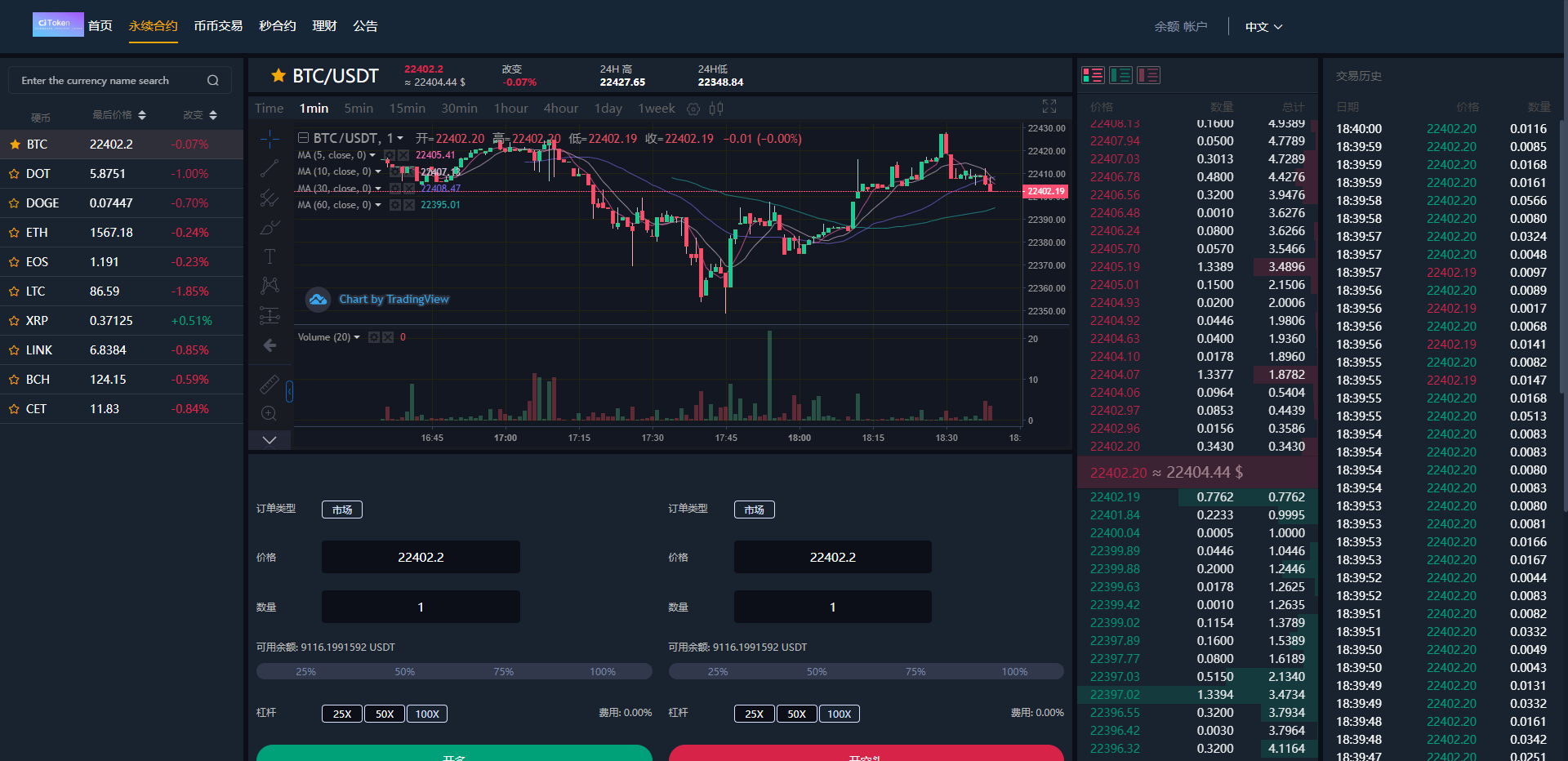 多语言交易所系统/永续币币秒合约交易/质押理财交易所