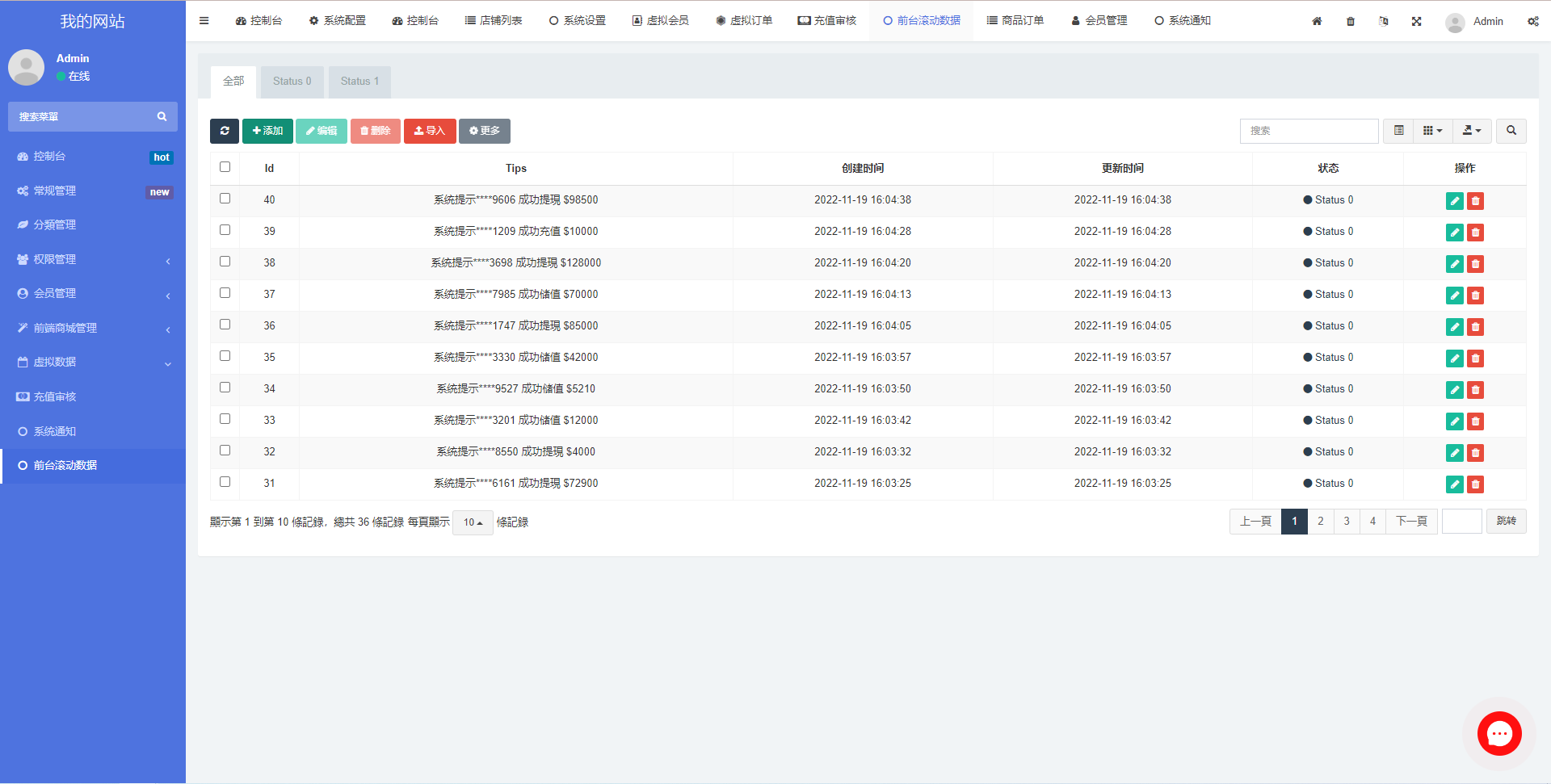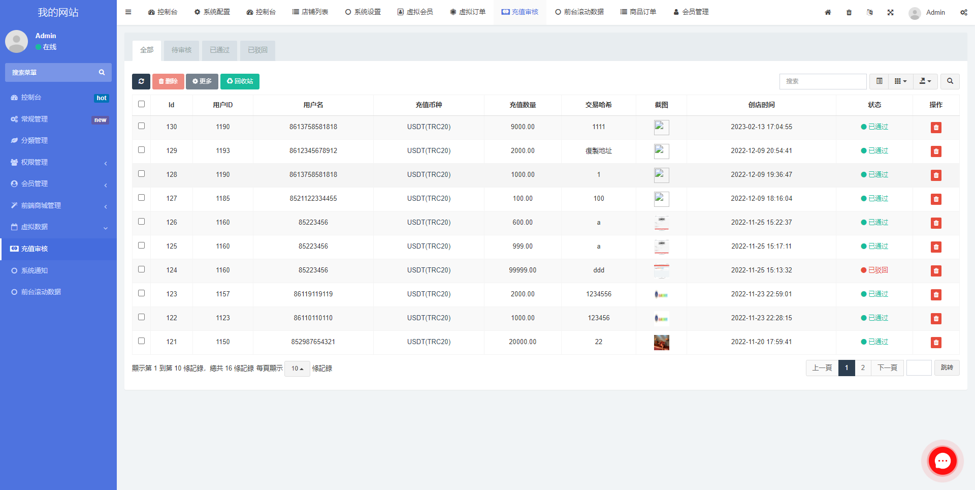 新增usdt充值、虚拟数据、前台滚动一些小功能