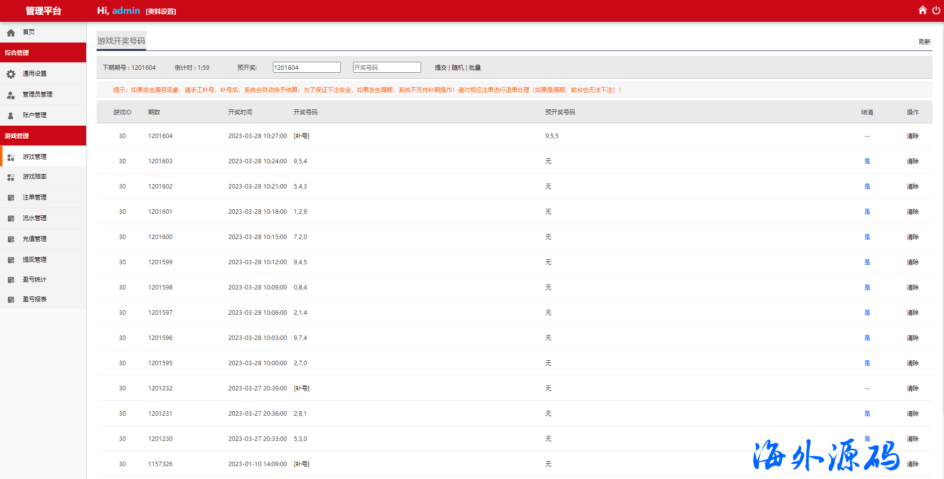 前端多个玩法,采集开奖正常,带开奖预设等功能