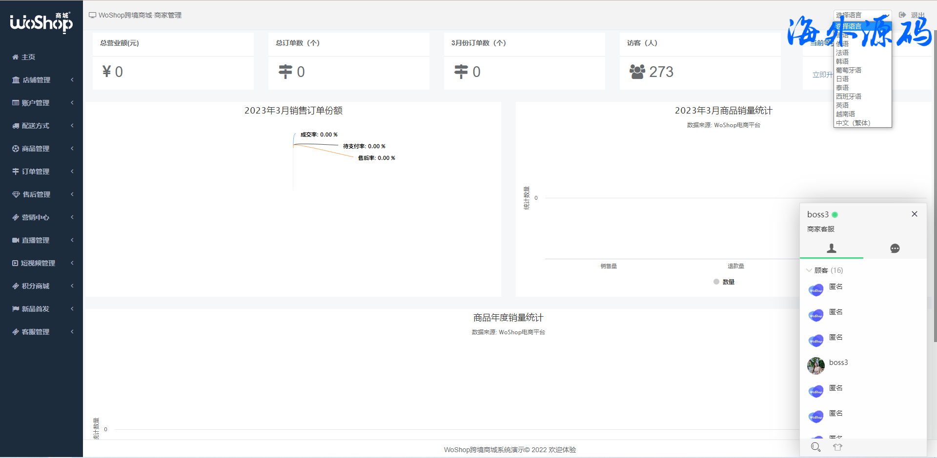全套WoShop多商户跨境电商系统/付费插件/多语言/国际支付