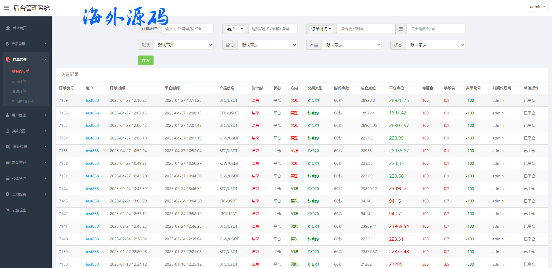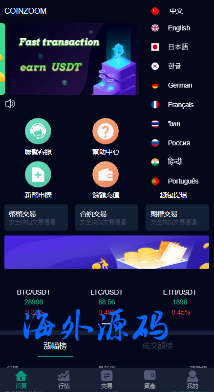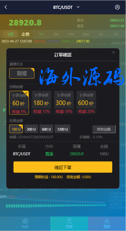 多语言微盘时间系统/币币合约期权交易/微交易/伪交易所源码