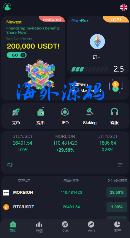 二开版多语言交易所系统/秒合约/IEO/质押挖矿/自动充值