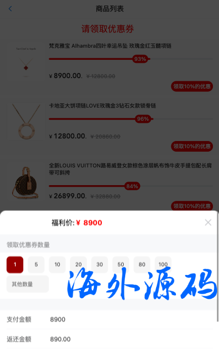 二开版天猫商城优惠卷投资系统/奢饰品投资理财系统