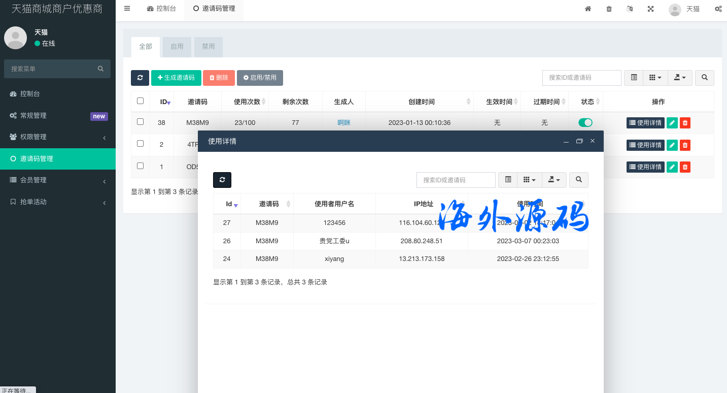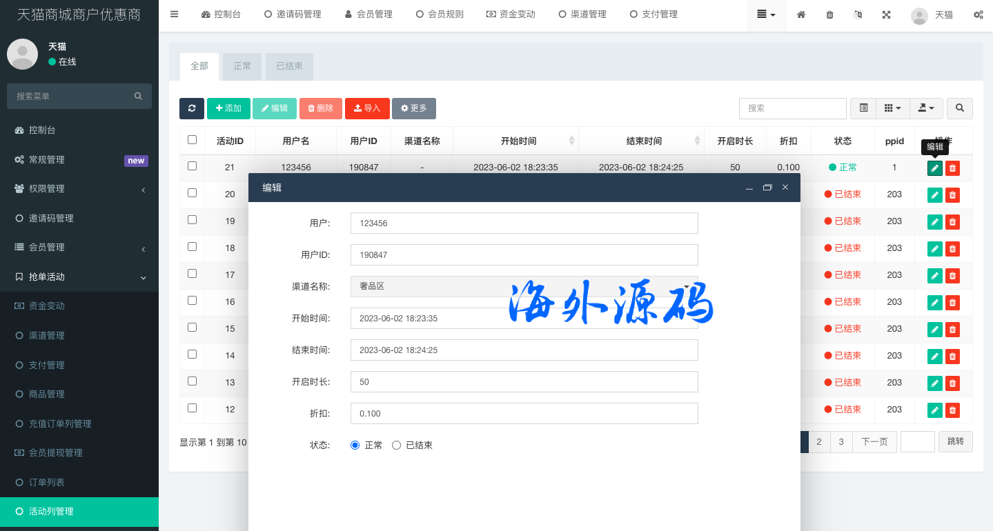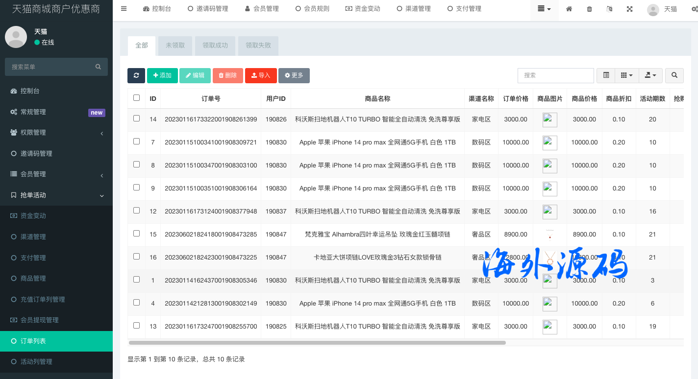 此套是全新开发的天猫商城优惠卷投资系统,后端使用fastadmin框架