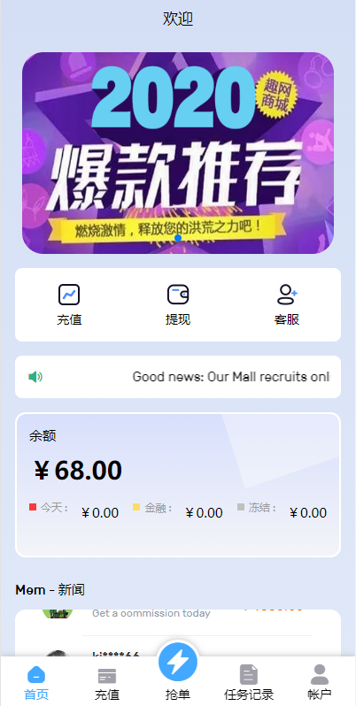 海外多语言抢单刷单系统/订单自动匹配系统/代理后台/刷单源码