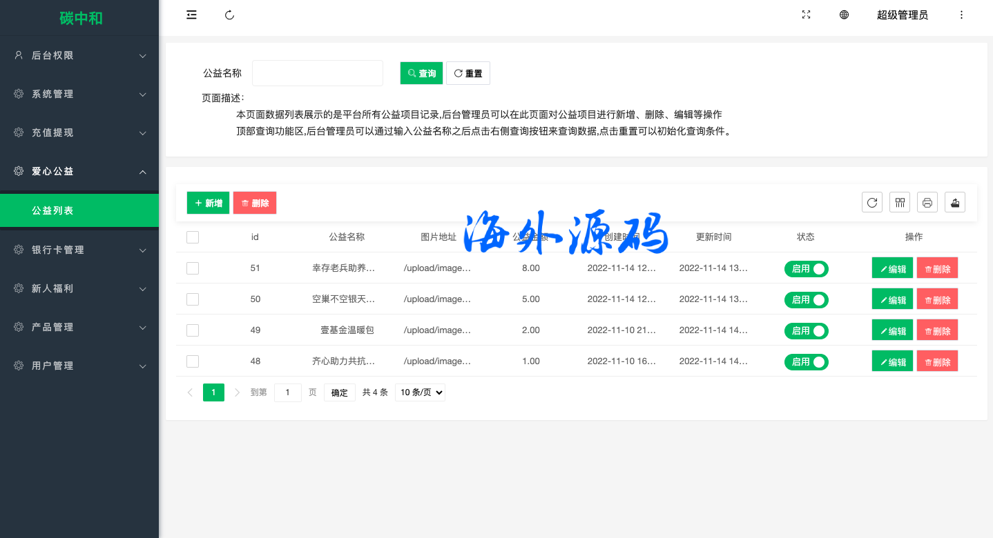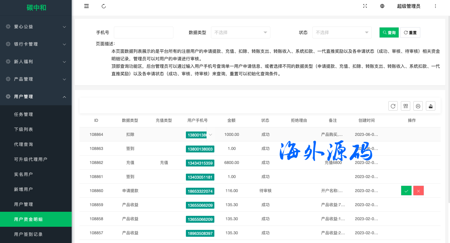 系统功能完善带代理后台,功能有签到,余额宝,爱心捐赠,邀请,转账等功能