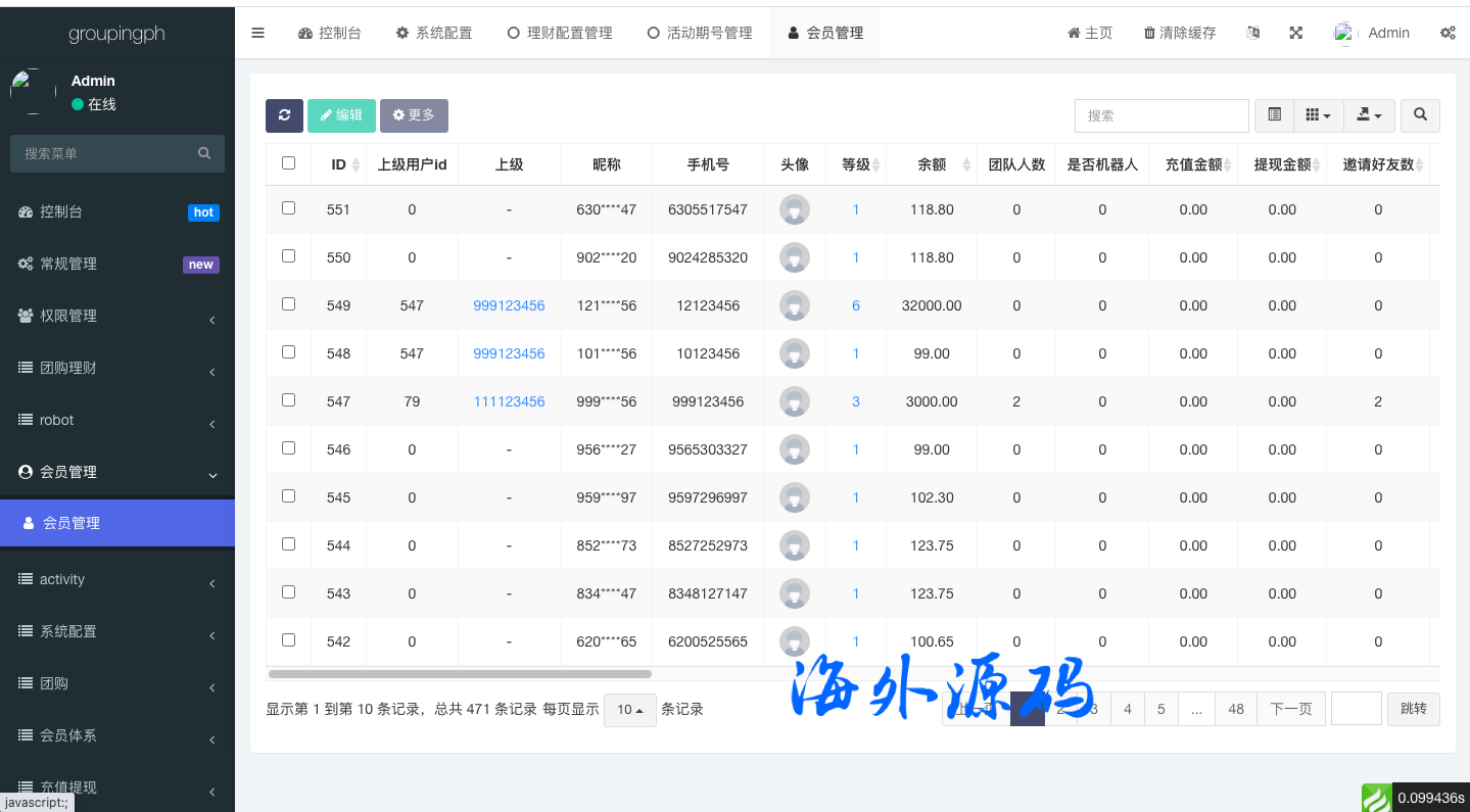 一套海外的拼团回购投资理财系统,前端英文跟印地语