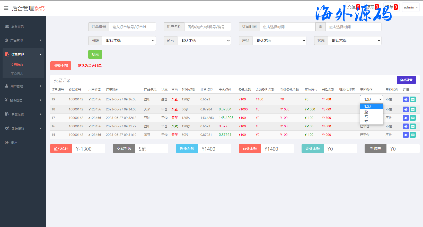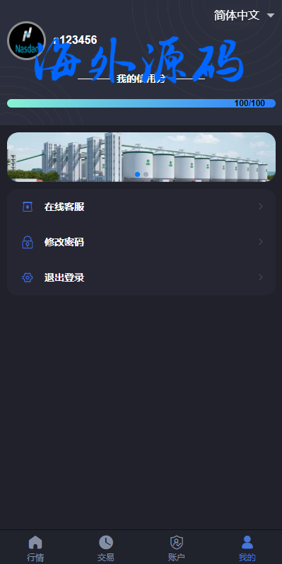 前端功能简洁,K线UI优美,用户信用分后台可更改