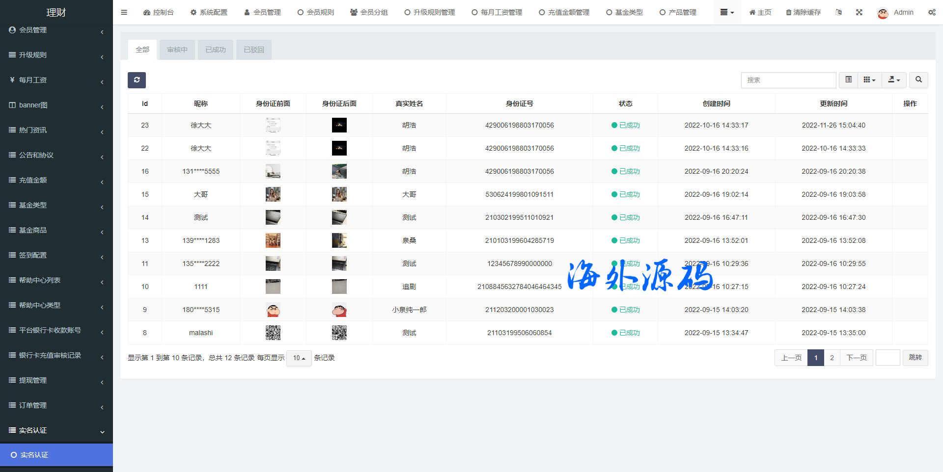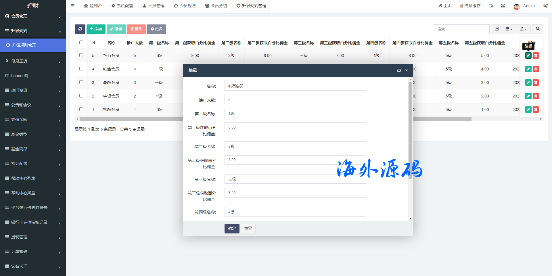 前端使用vue开发贷源码,后端使用FastAdmin框架