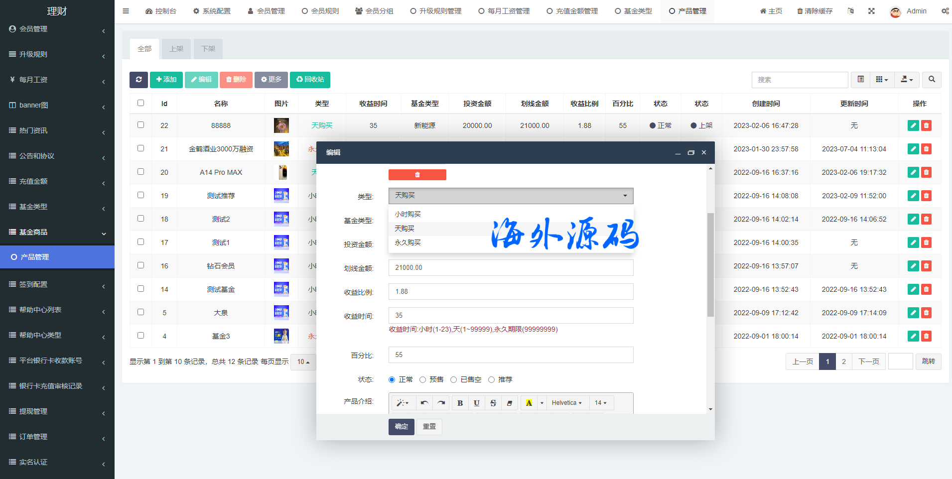 新版基金理财系统/基金申购投资系统/前端vue