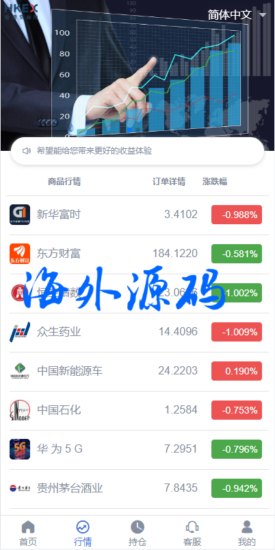 此套系统前端全新定制UI,二开了证券类型交易