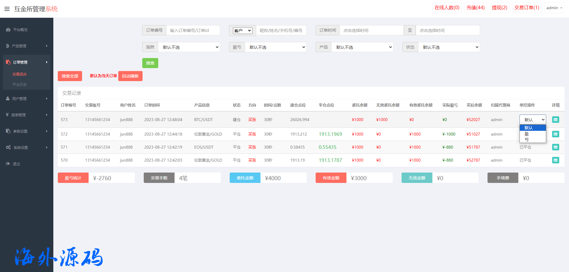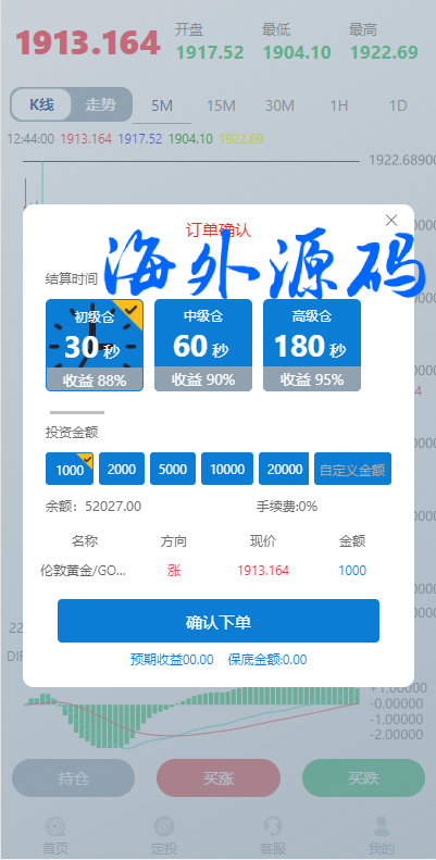 二开版虚拟币微交易系统/伪交易所系统/代理后台/余额宝微盘源码