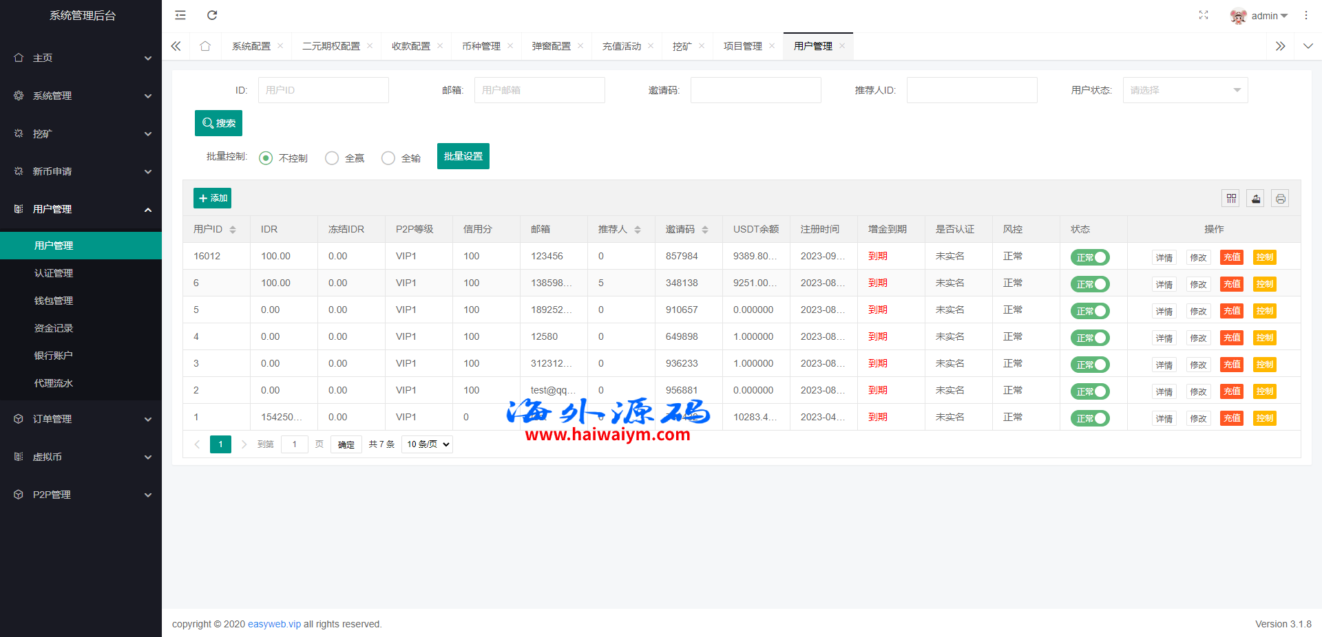 新版多语言交易所系统/秒合约币币交易/P2P理财派单抢单