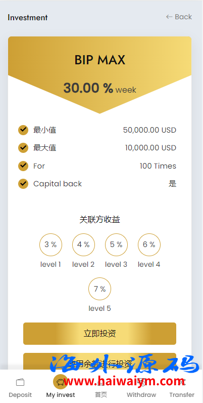 多语言投资理财系统/新能源投资返利/海外投资众筹系统
