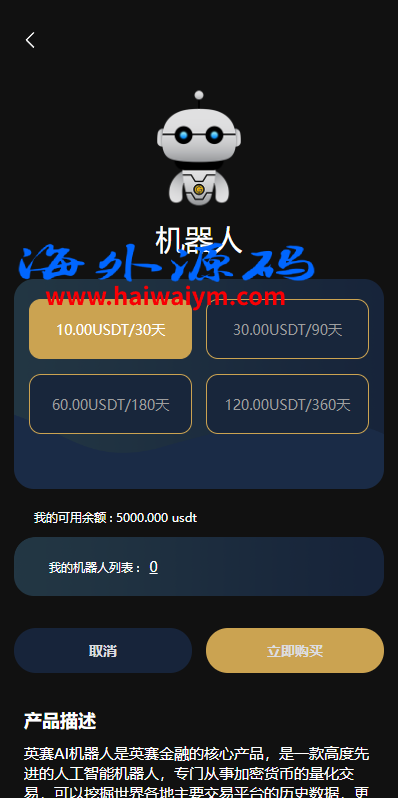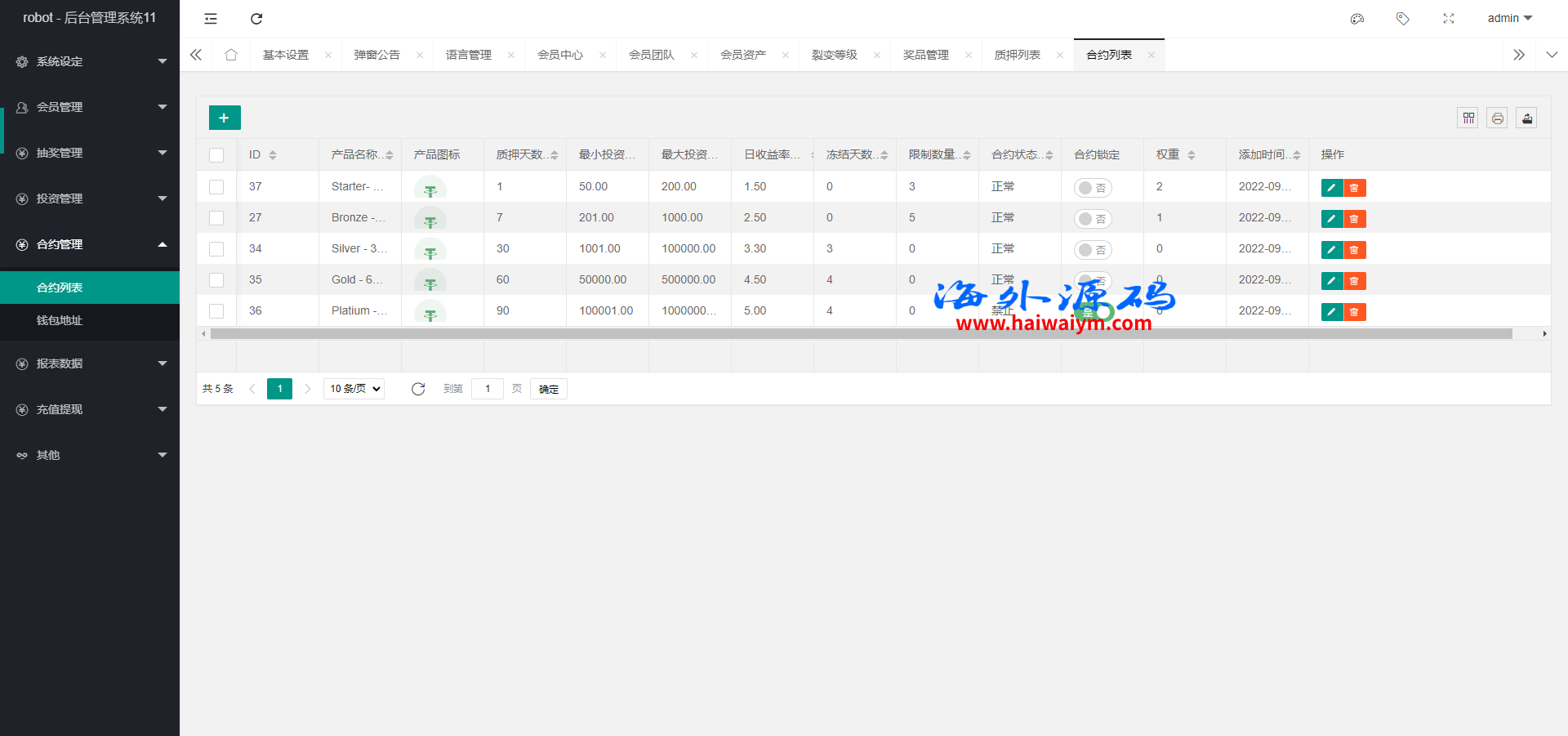 多语言海外机器人投资系统/虚拟币质押投资/区块链投资
