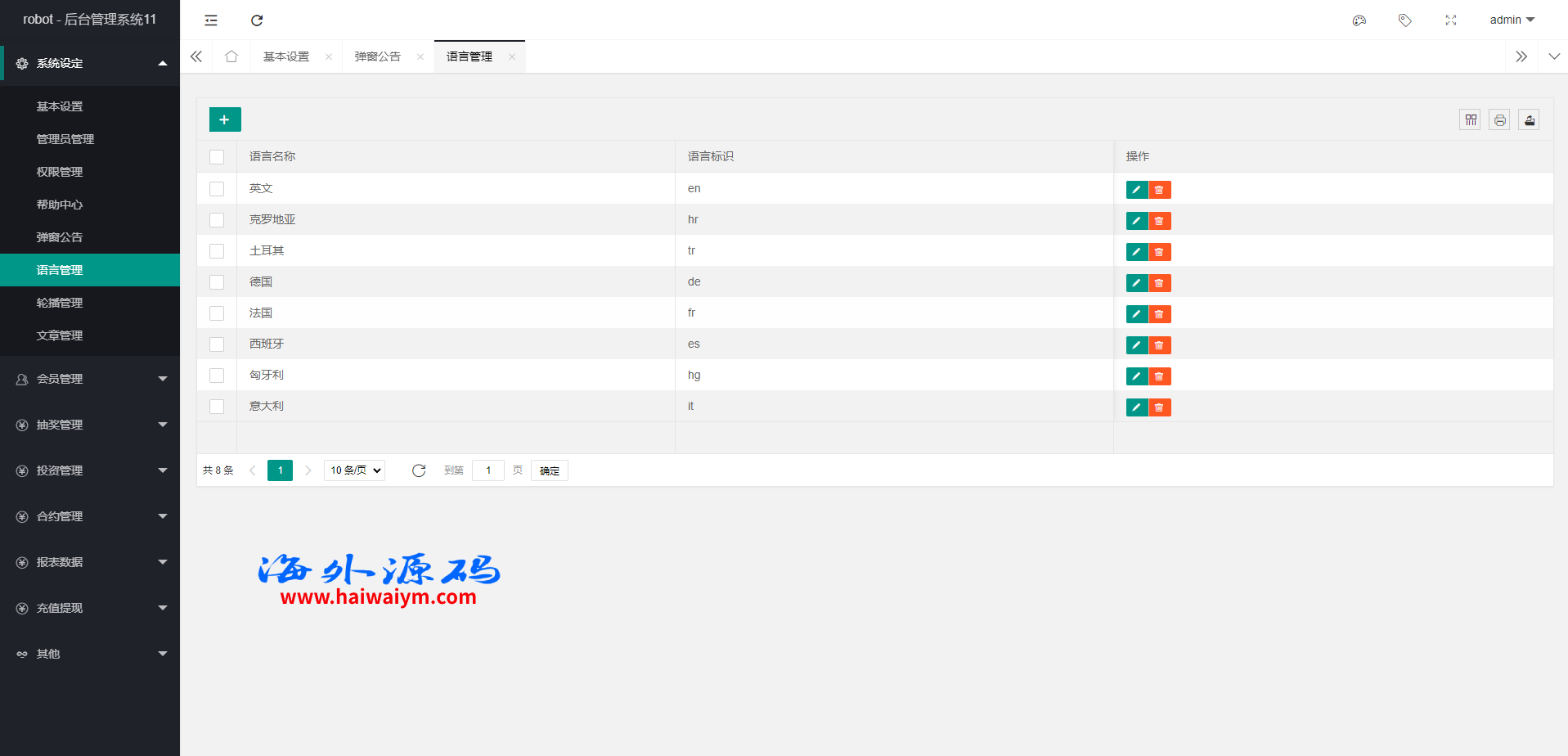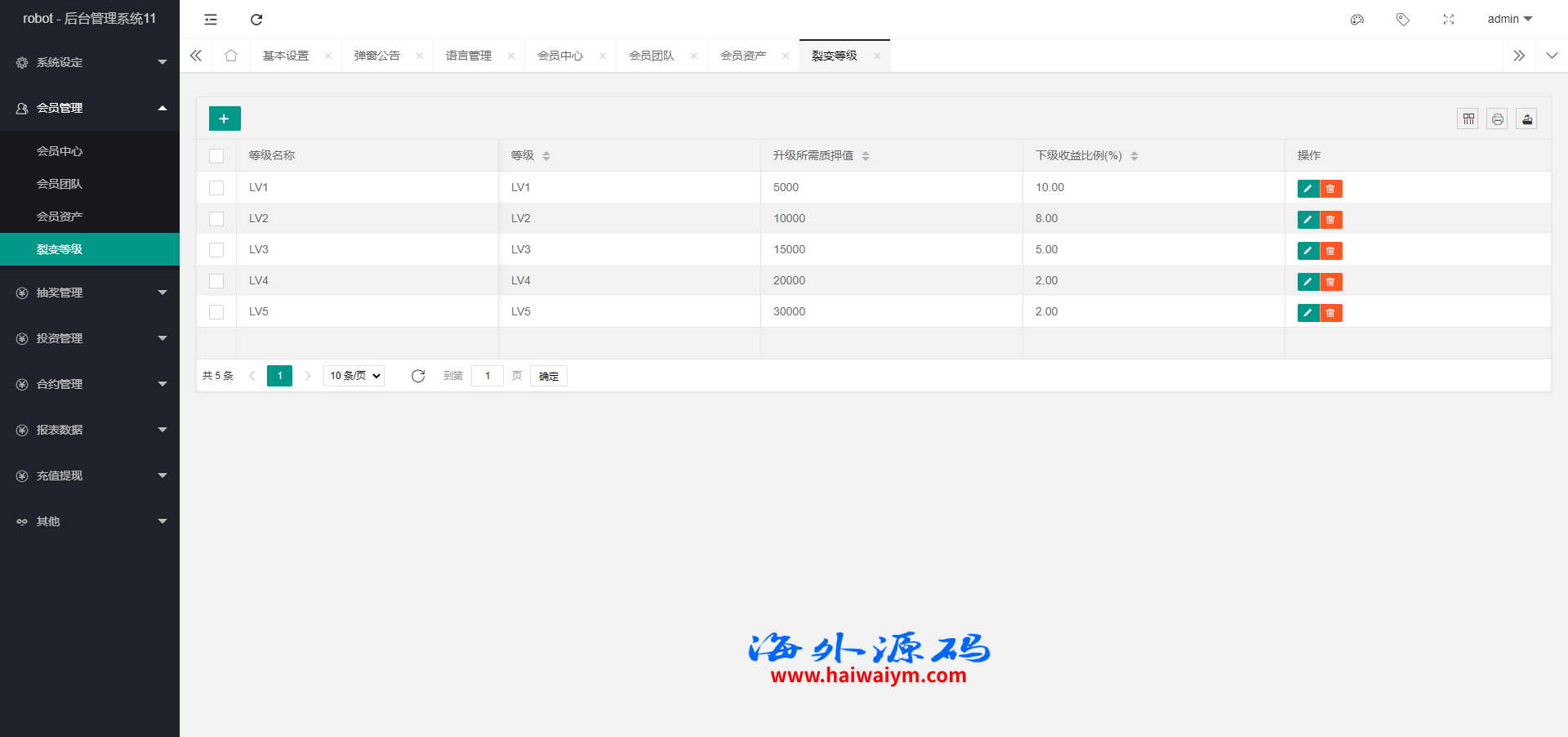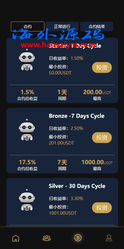 系统是机器人投资购买,然后合约投资购买,带邀请分销,前端多语言默认中文隐藏