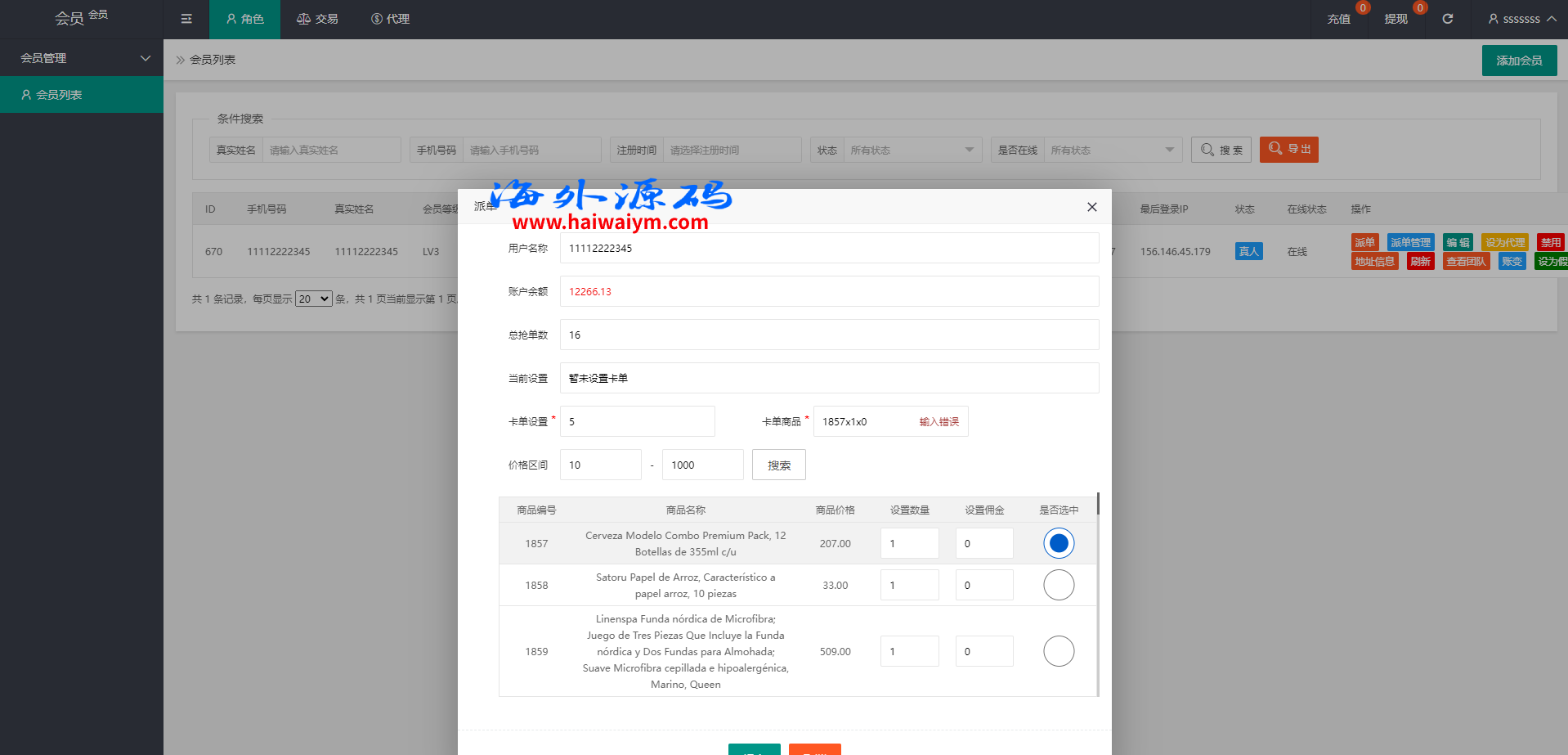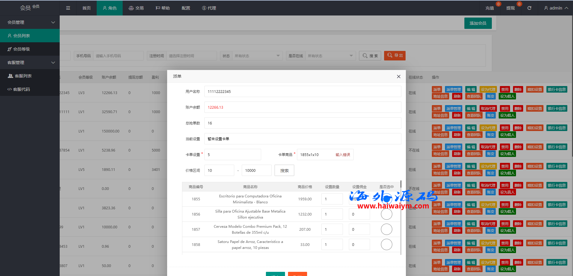 系统支持卡单、代理后台等功能