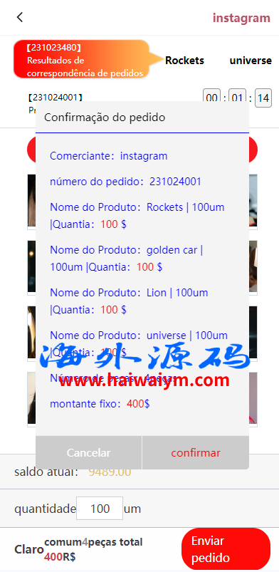 系统前端是单葡萄牙语言的伪商城刷单系统,带代理后台跟预设