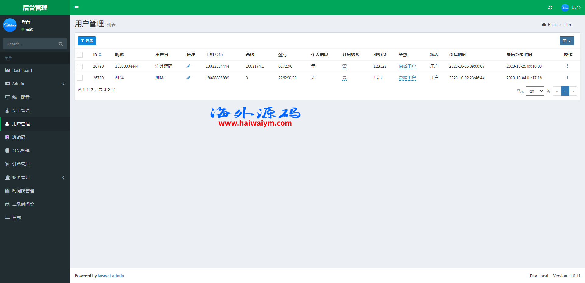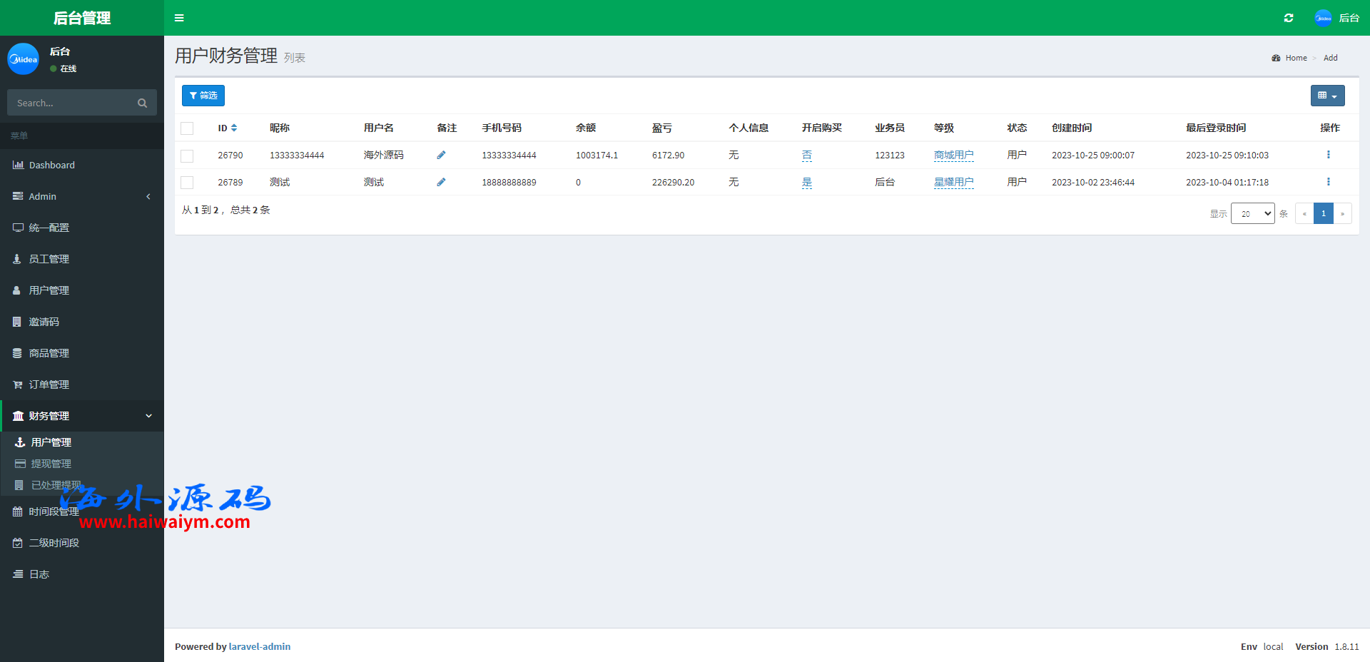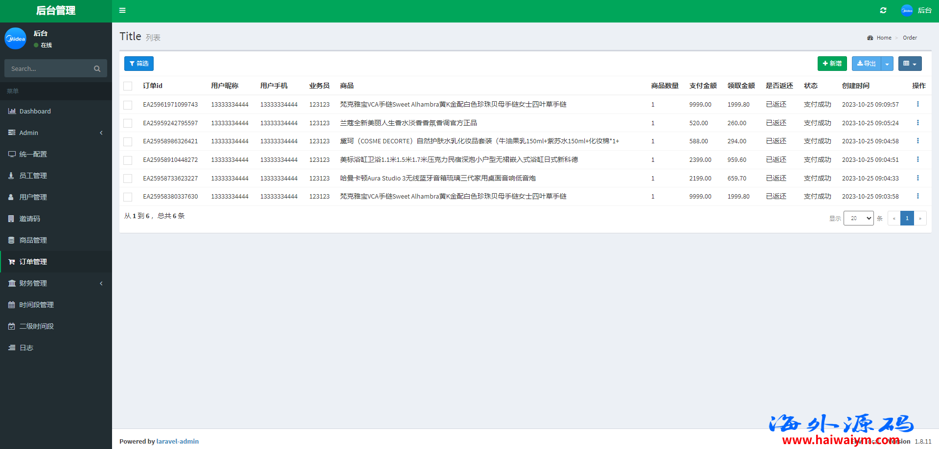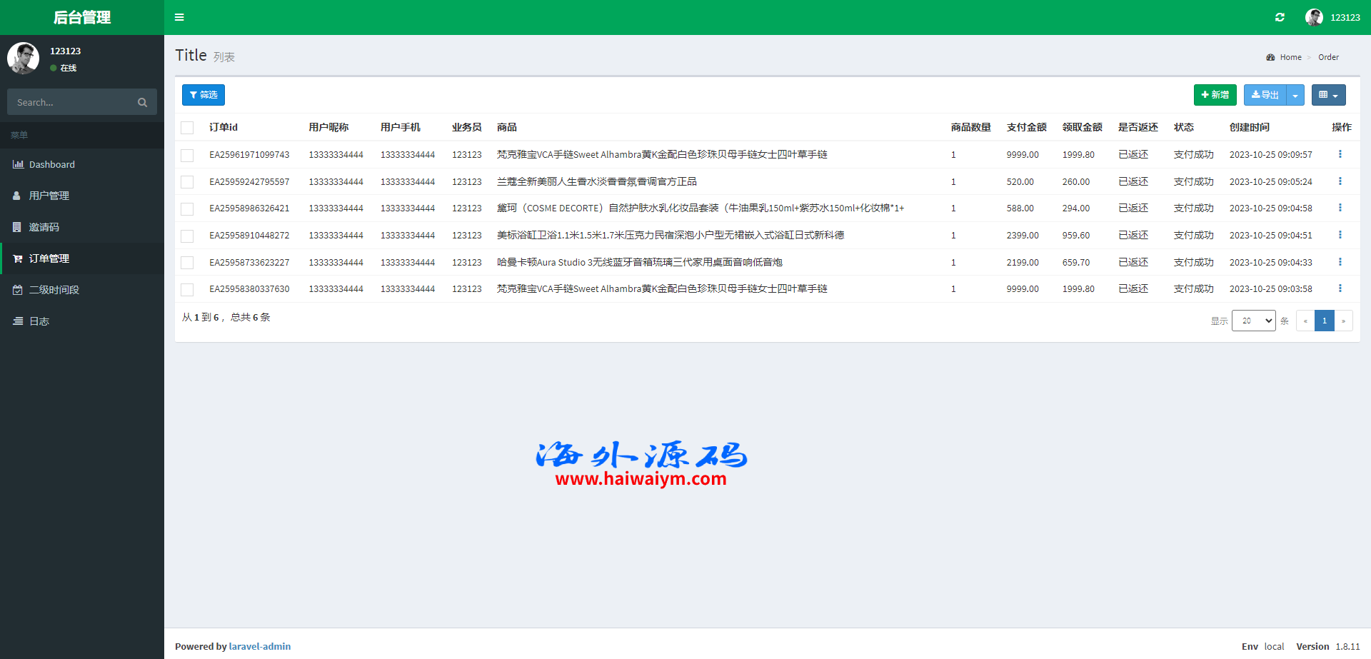 系统采用Larave框架,系统带权限代理后台