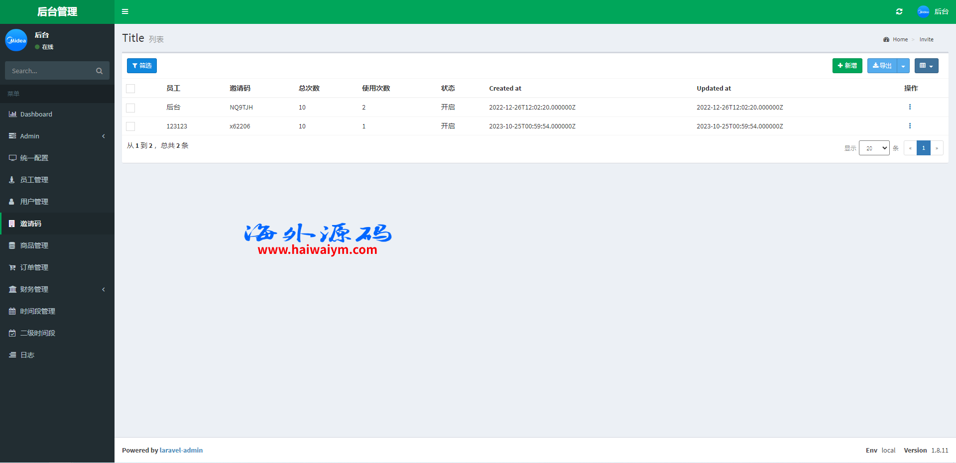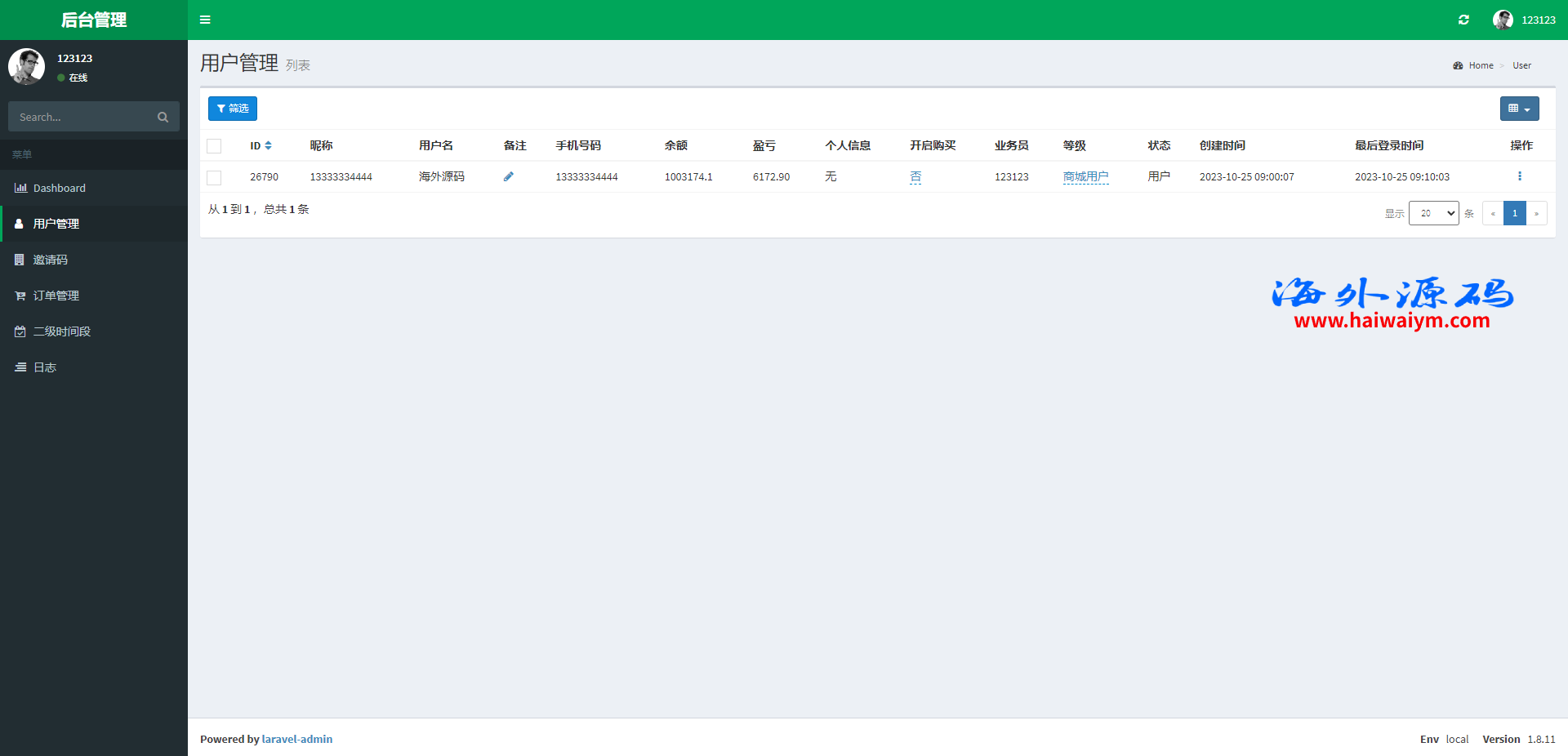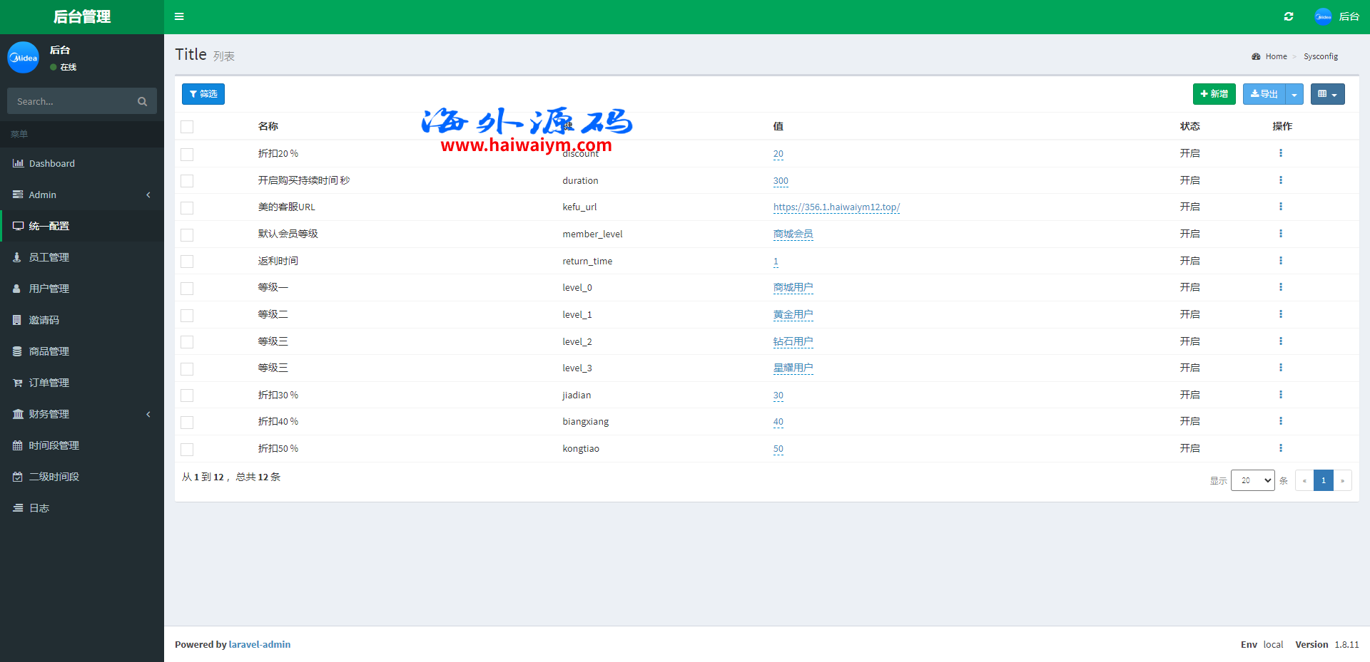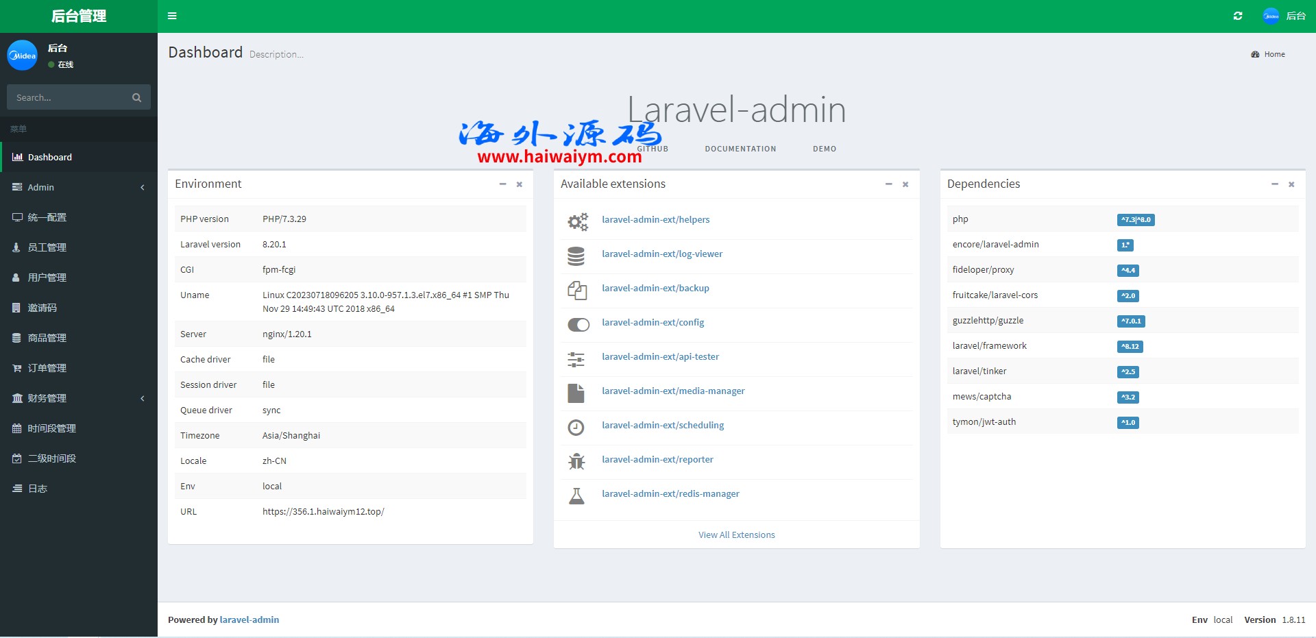 系统采用Larave框架,系统带权限代理后台