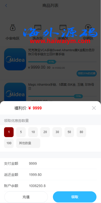 二开版美的优惠卷投资系统/奢饰品投资返利/代理后台