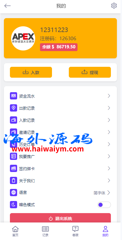 多语言外汇微交易系统/海外微盘源码/时间盘系统