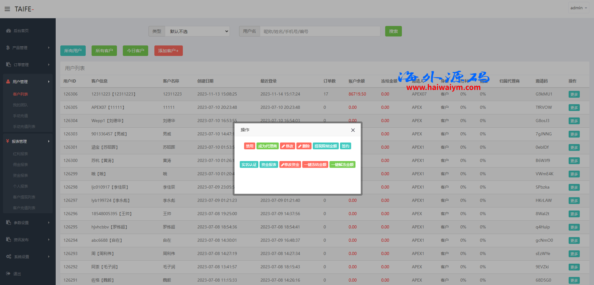 系统交易产品以外汇为主K线正常、提现限制、金额一键冻结等功能