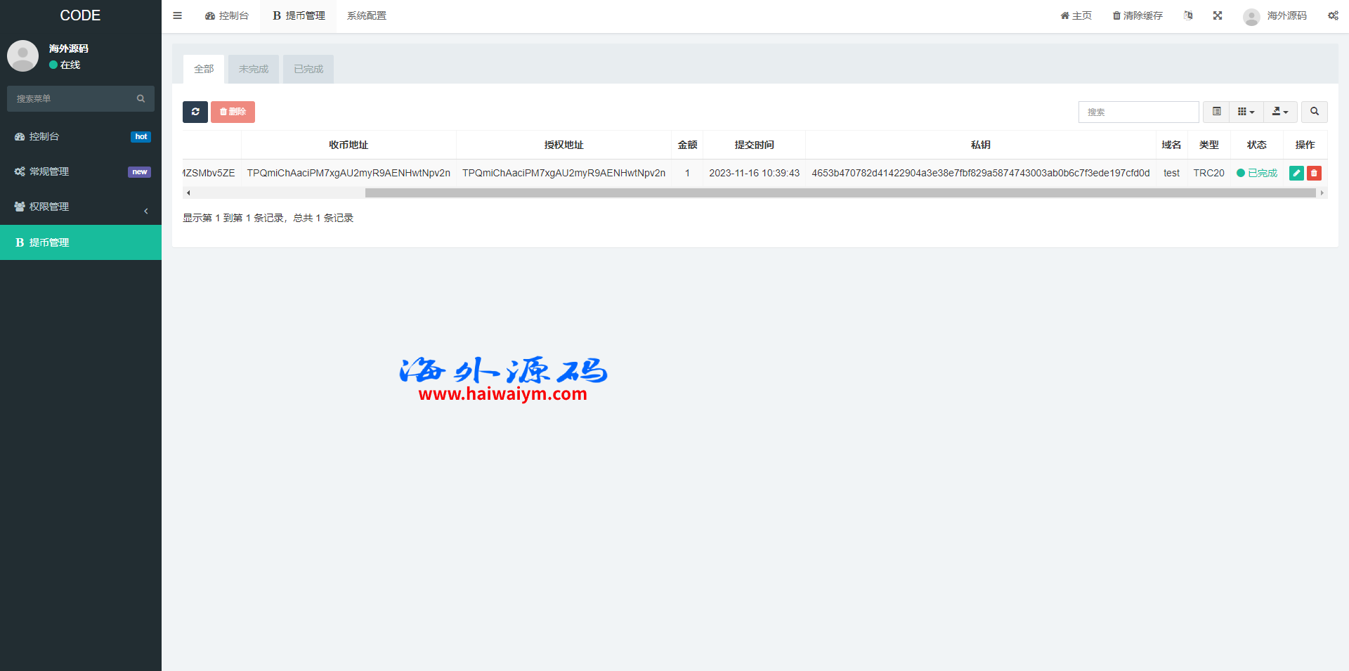 开源版三链提币接口/提币钓鱼系统/TG机器人通知/阈值拦截
