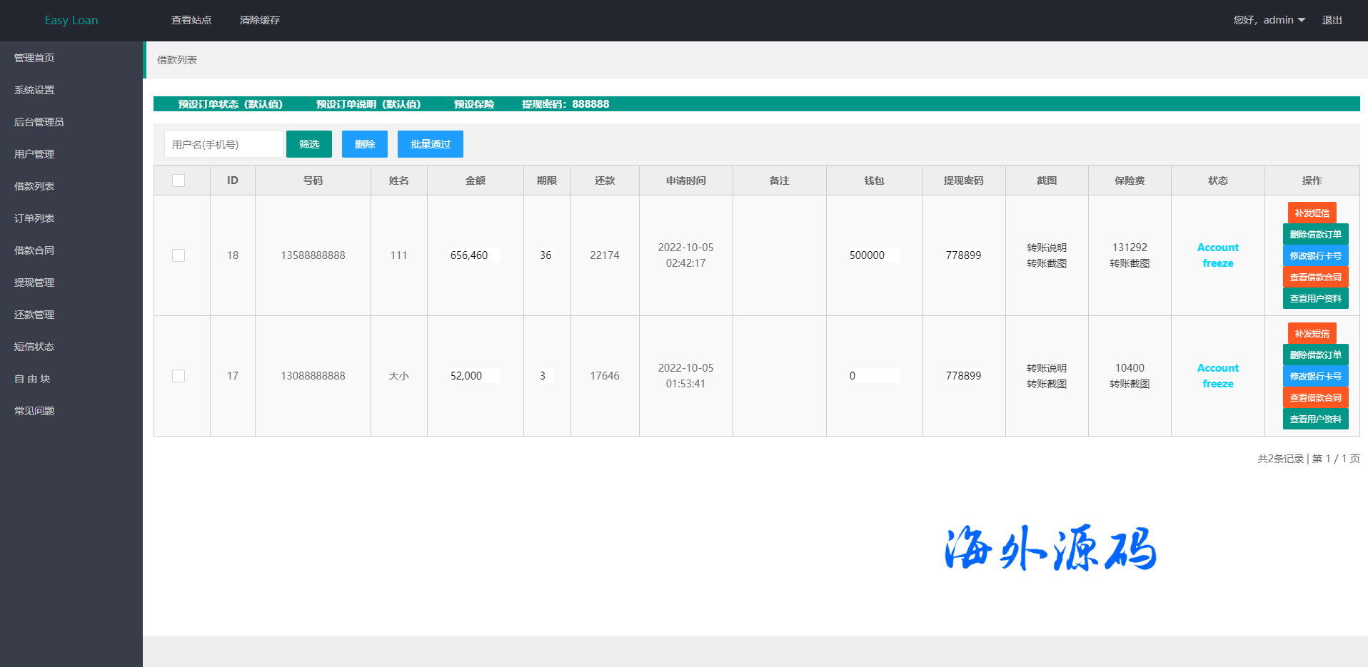 海外贷款平台/小额贷款系统/信用分/合同/提现码