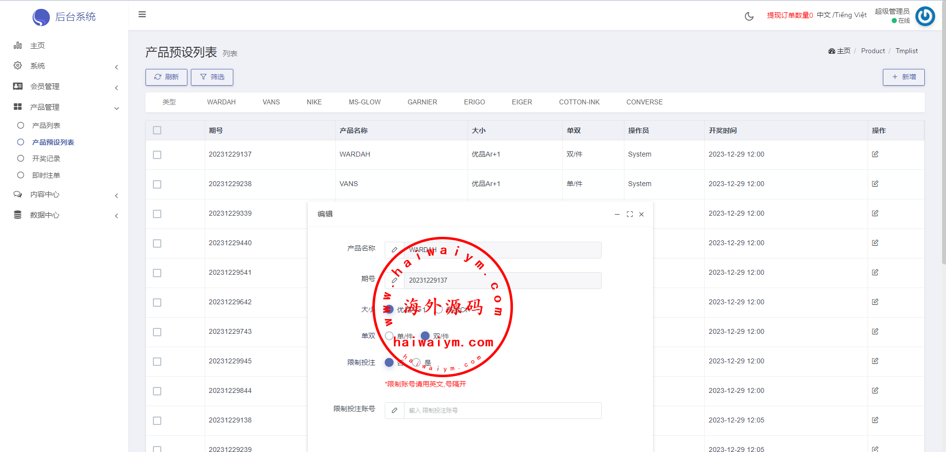 多语言海外伪商城刷单系统/CP快三/带预设/订单自动匹配