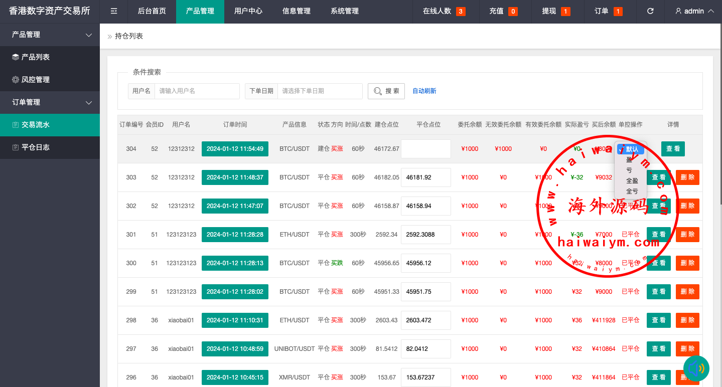 系统完美运行,框架非以前的至尊框架,前端k线正常,产品名称后台可任意修改